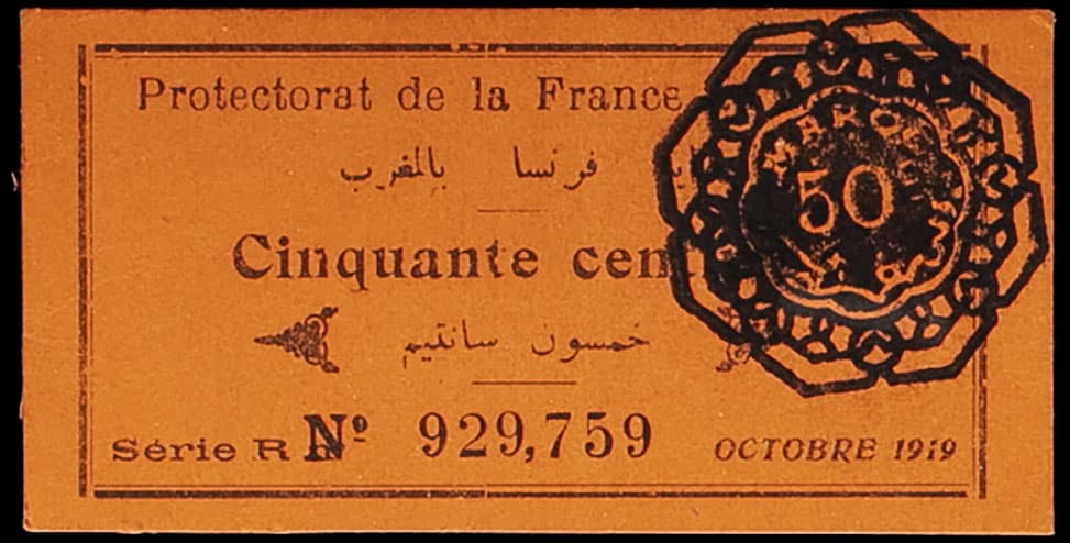 - MOROCCO 50 centimes type “Protectorat de la France au Maroc” octobre 1919.
