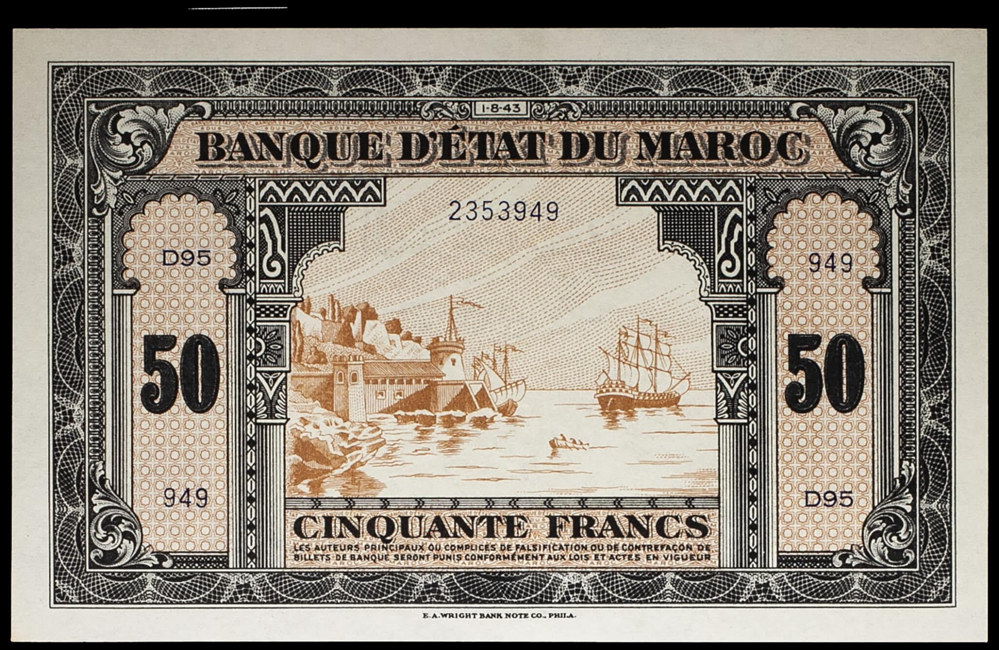 - MOROCCO 50 francs, impression US 1-8-1943.