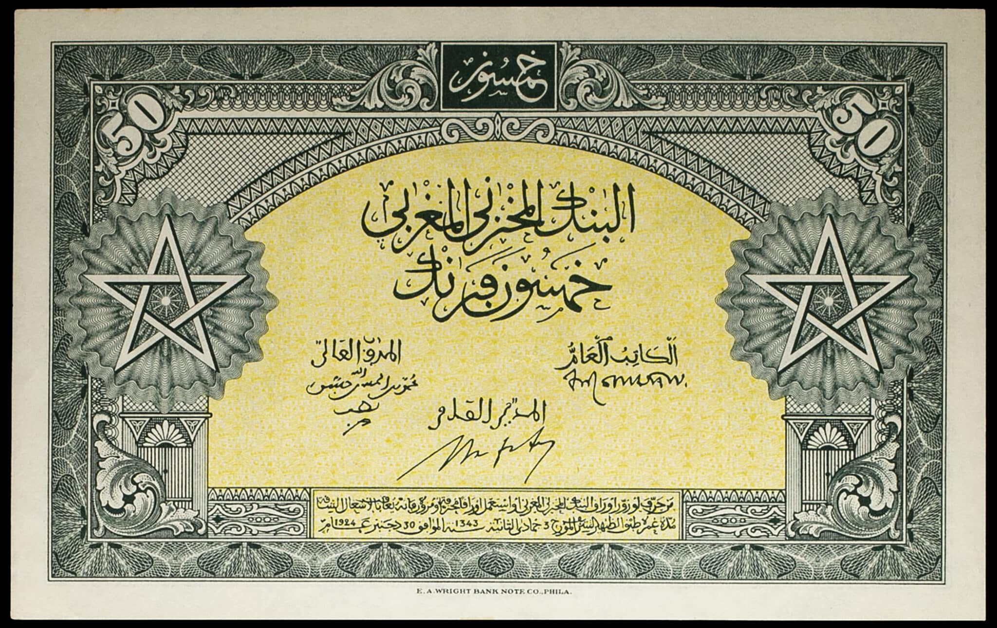- MOROCCO 50 francs non émis (Remainder), impression US 1-8-1943.