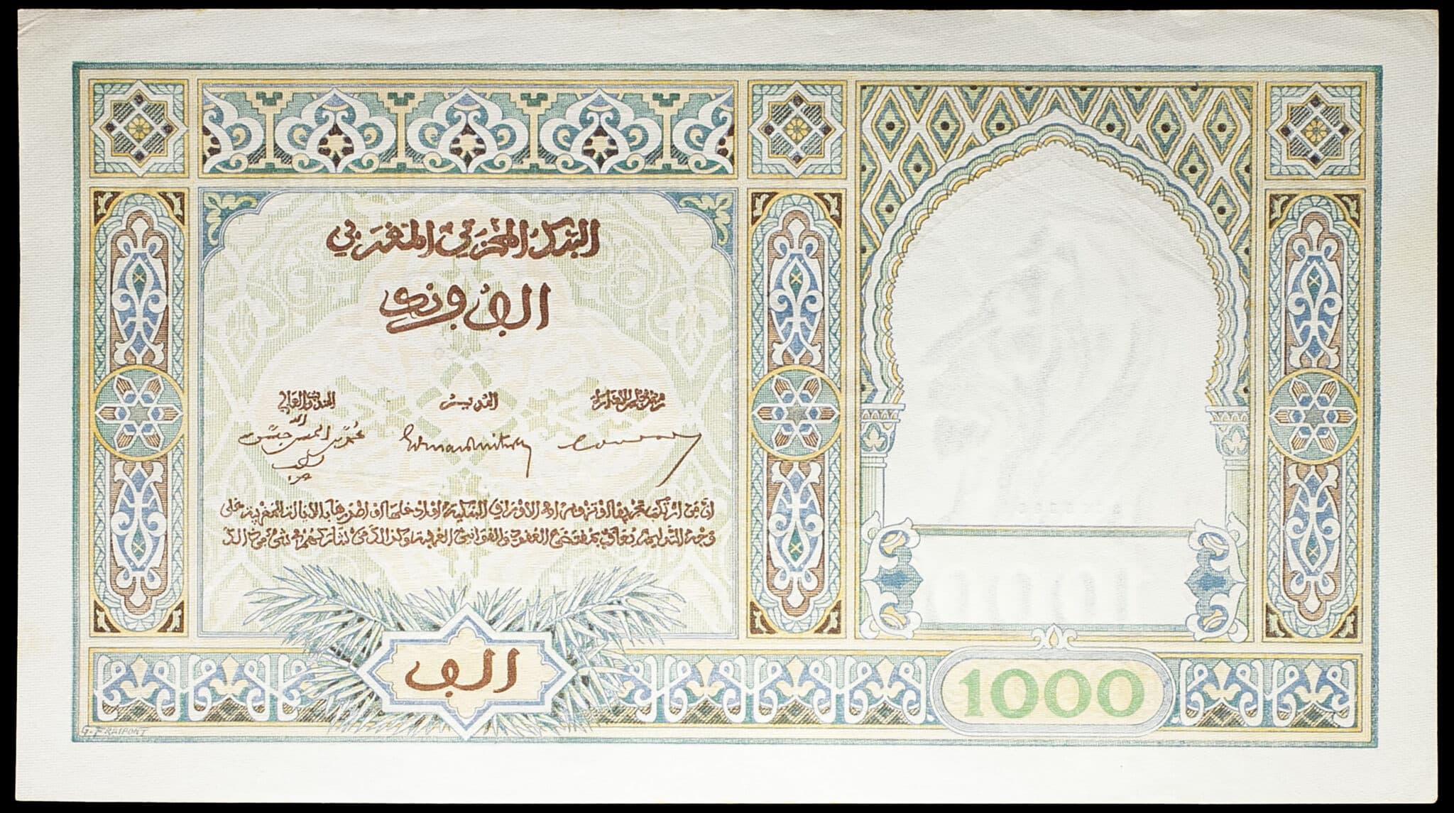 - MOROCCO 1000 francs 9-1-1950.
