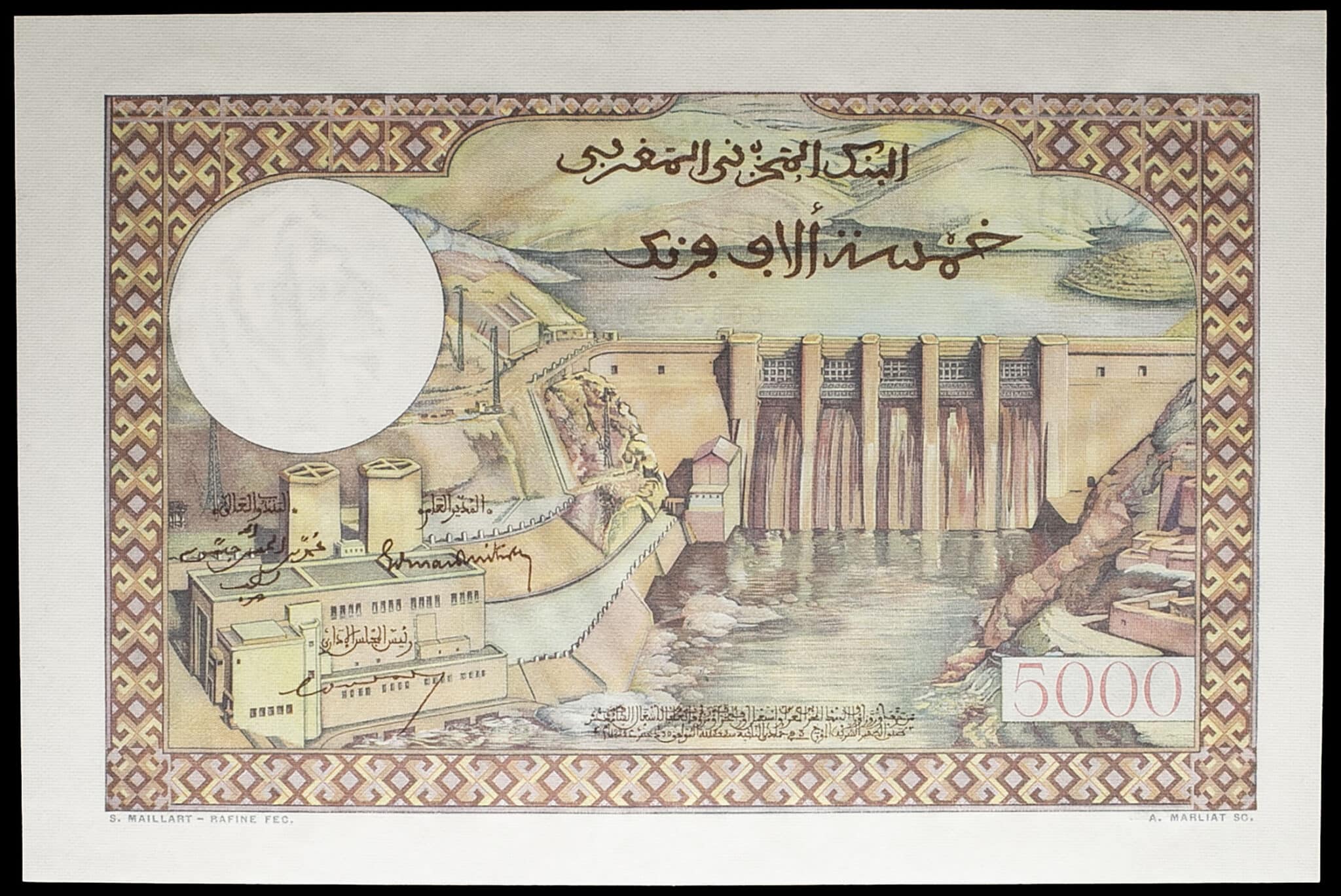 - MOROCCO 5000 francs type “vue de Fès” (SPÉCIMEN) ND (1953).