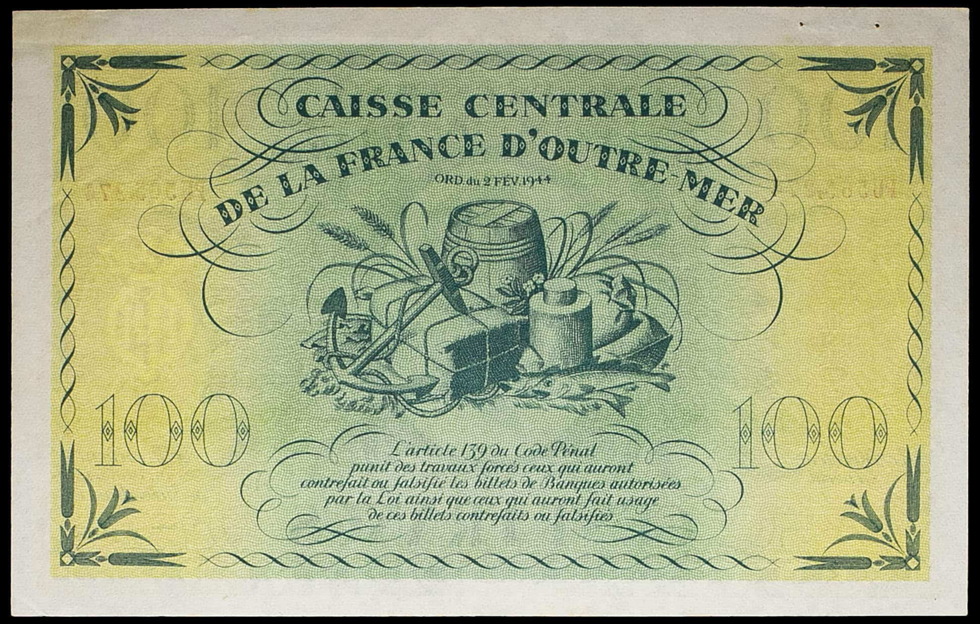 - 100 francs type “Marianne” dit “Edmond Dulac” - Caisse centrale de la France d’outre-mer 2 février 1944.