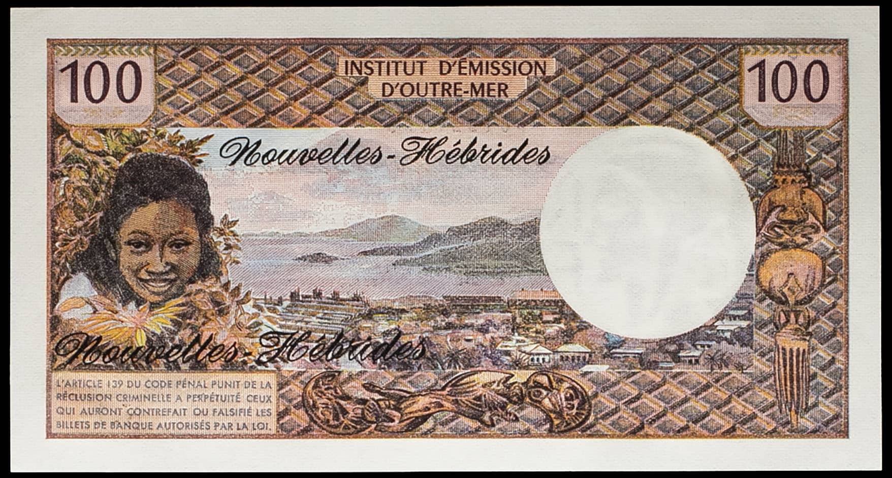 - NEW HEBRIDES 100 francs, type modifié ND (1975).