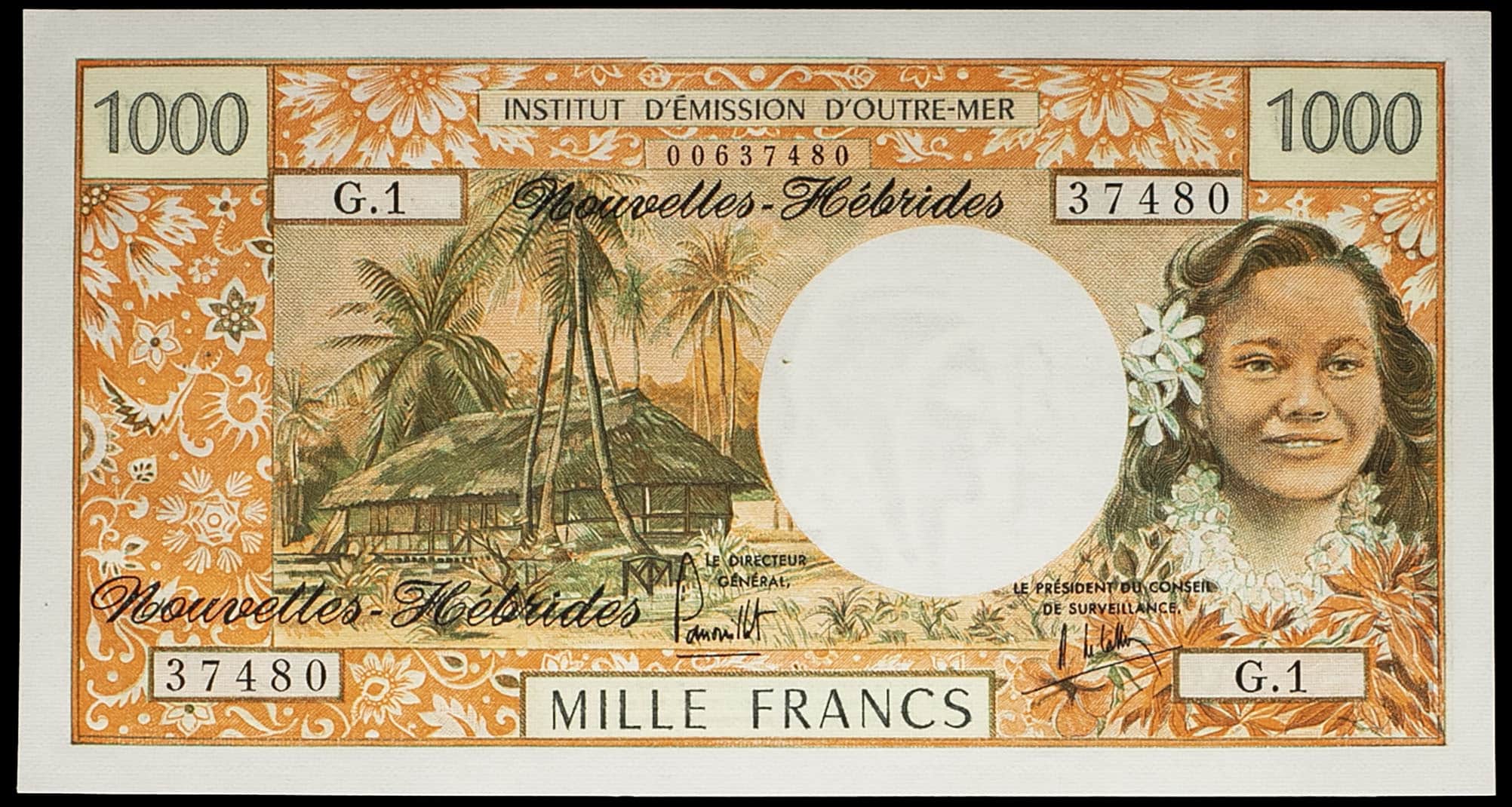 - NEW HEBRIDES 1000 francs, type modifié ND (1975).
