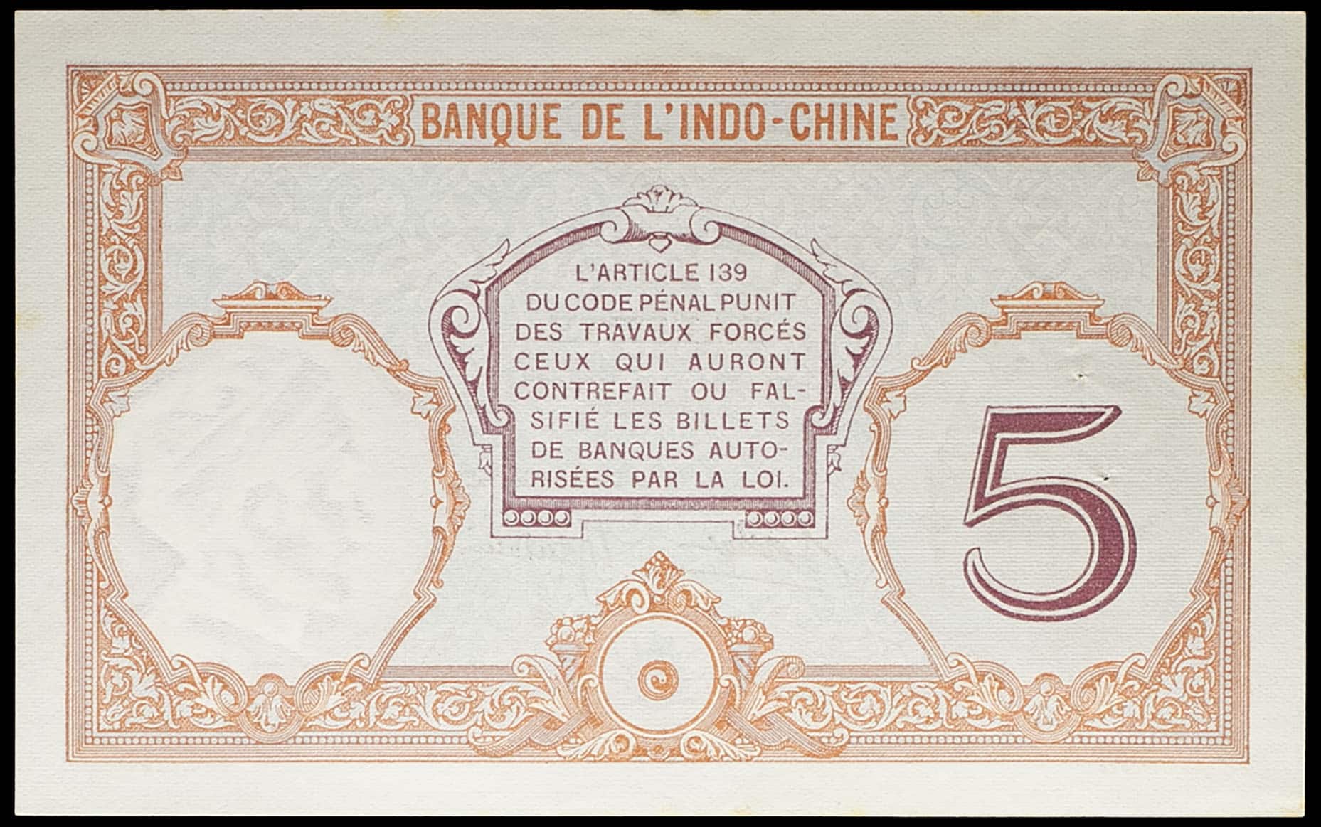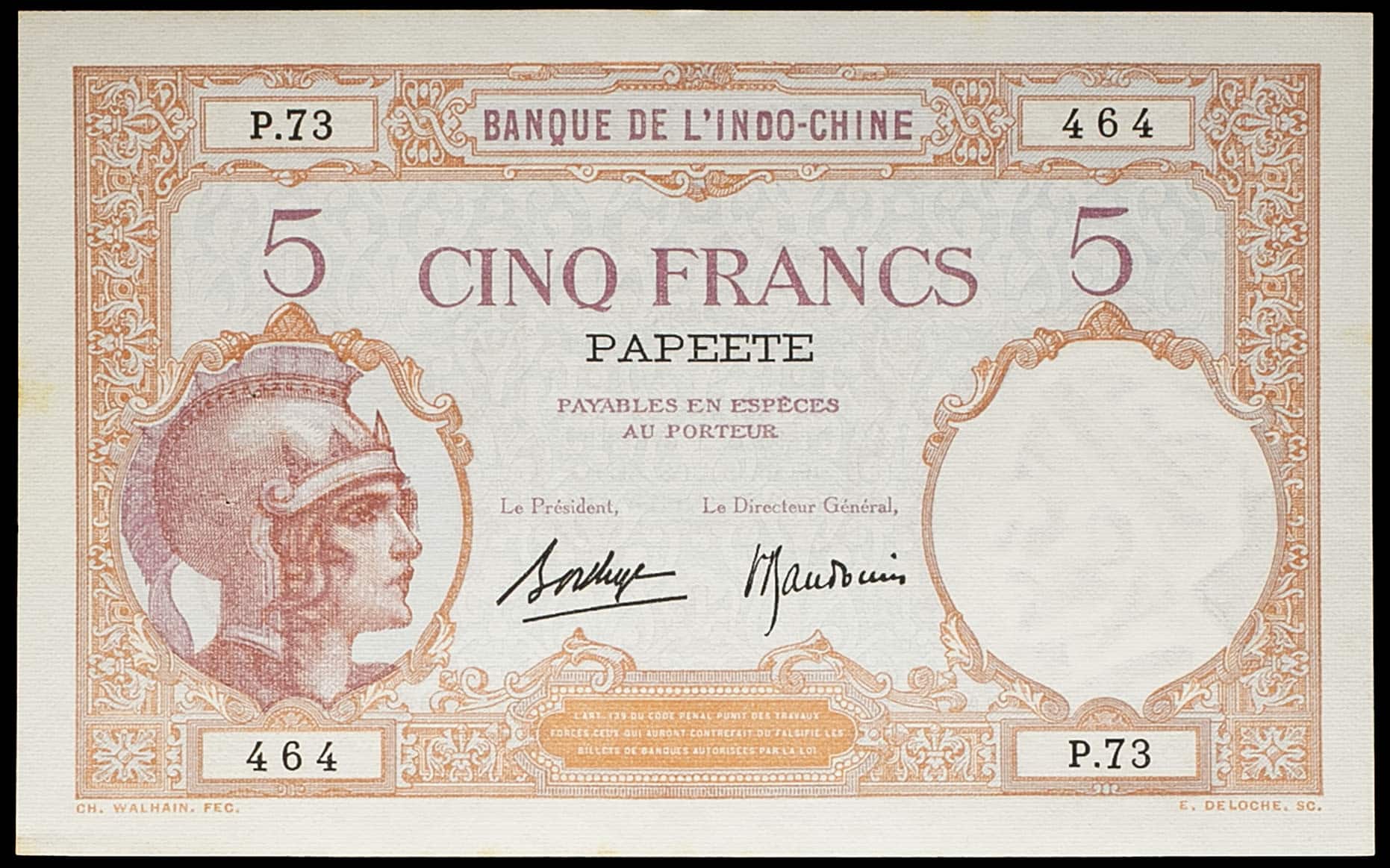 - FRENCH POLYNESIA / TAHITI 5 francs type "Walhain" - Banque de l'Indo-Chine ND (1936).
