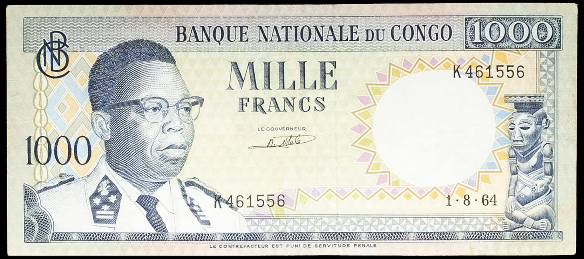 - CONGO (Democratic Republic) 1000 francs avec le portrait du président Joseph Kasa-Vubu 1.8.64.