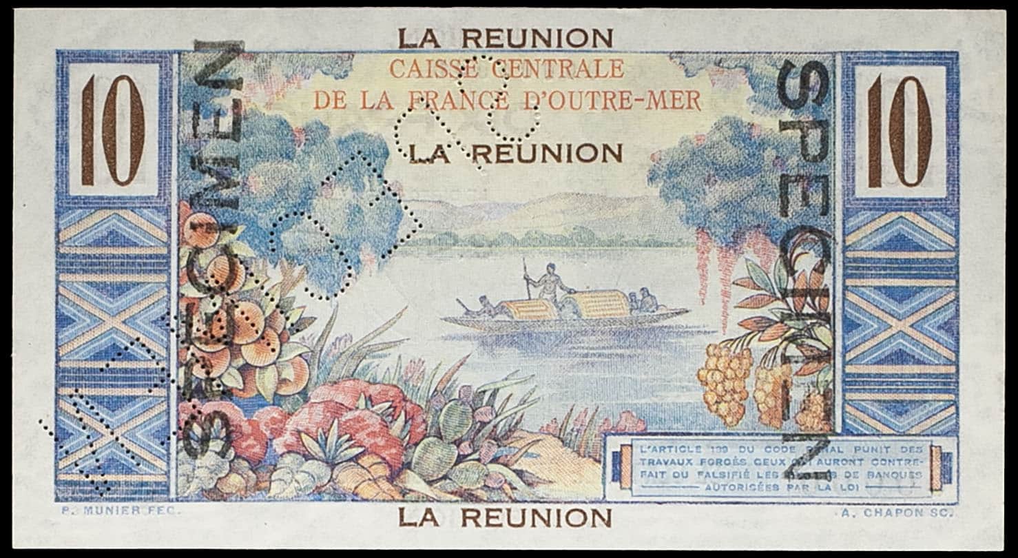 - REUNION 10 francs type “Colbert” (SPÉCIMEN) ND (1946).