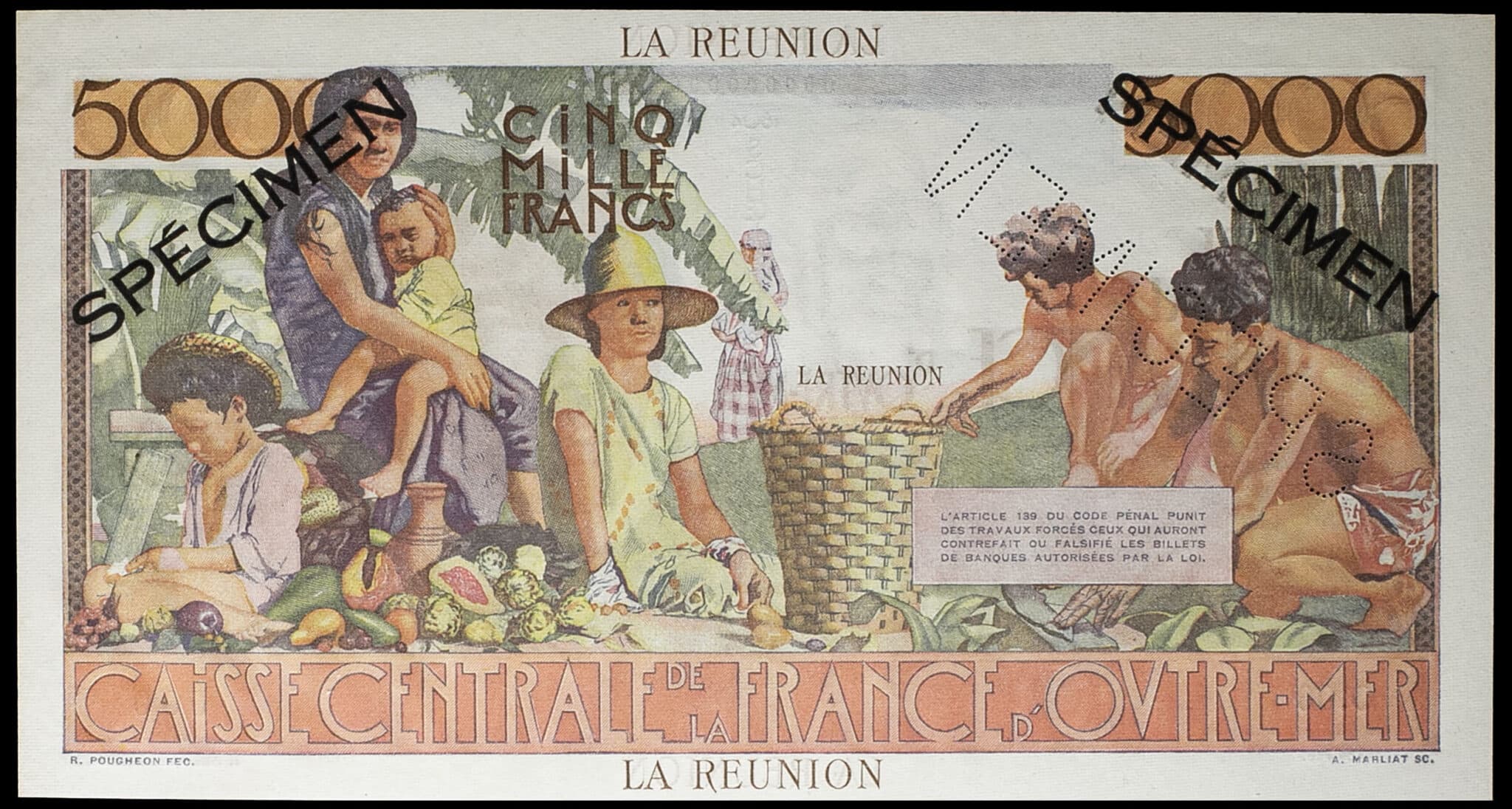 - REUNION 5000 francs type “Victor Schœlcher” (SPÉCIMEN) - Caisse centrale de la France d’outre-mer ND (1952).