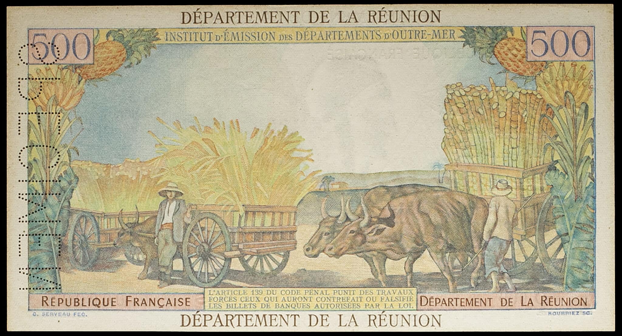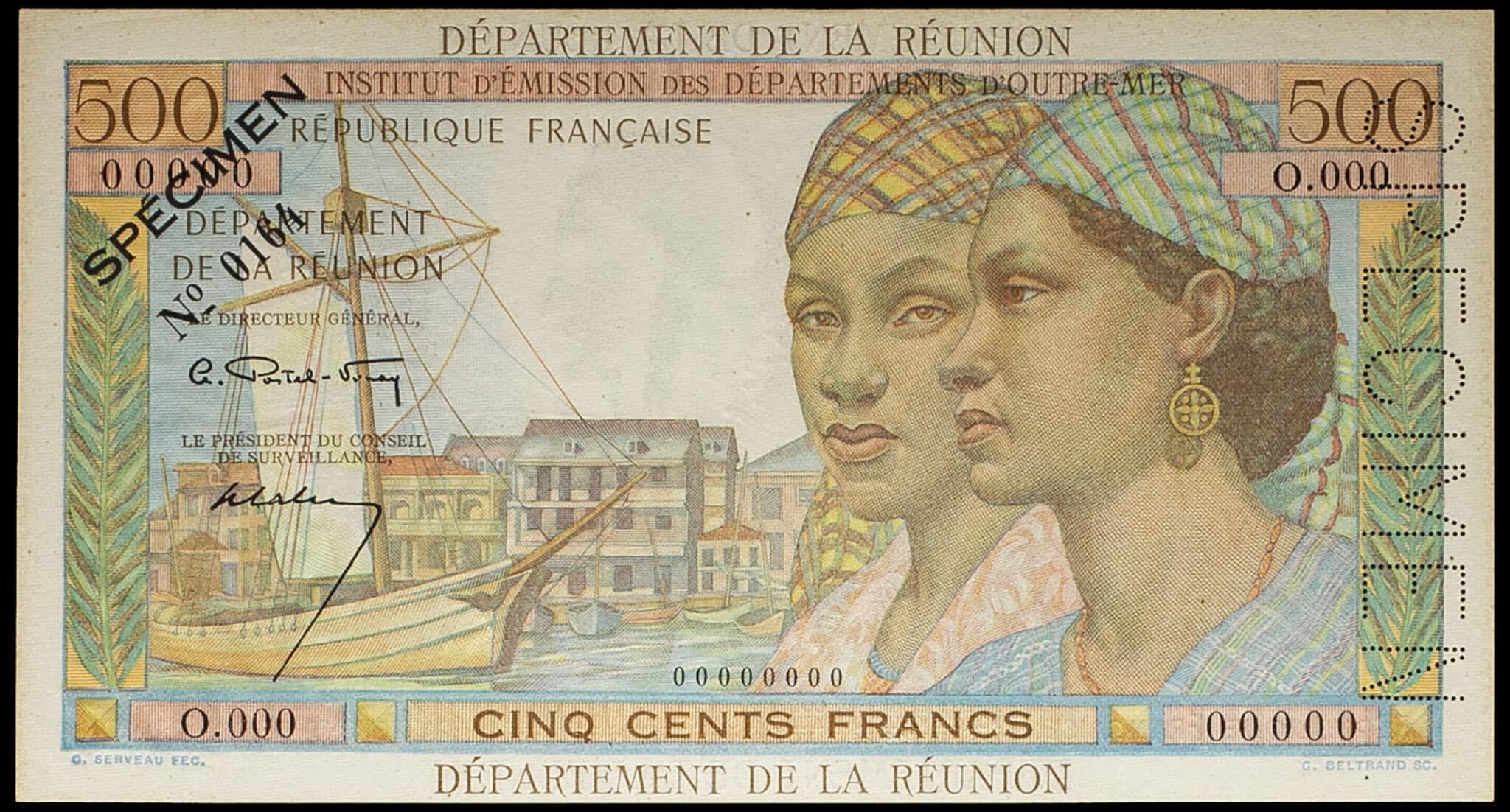 - REUNION 500 francs type “Pointe-à-Pitre” (SPÉCIMEN) - Institut d’Émission des départements d’outre-mer ND (1964).