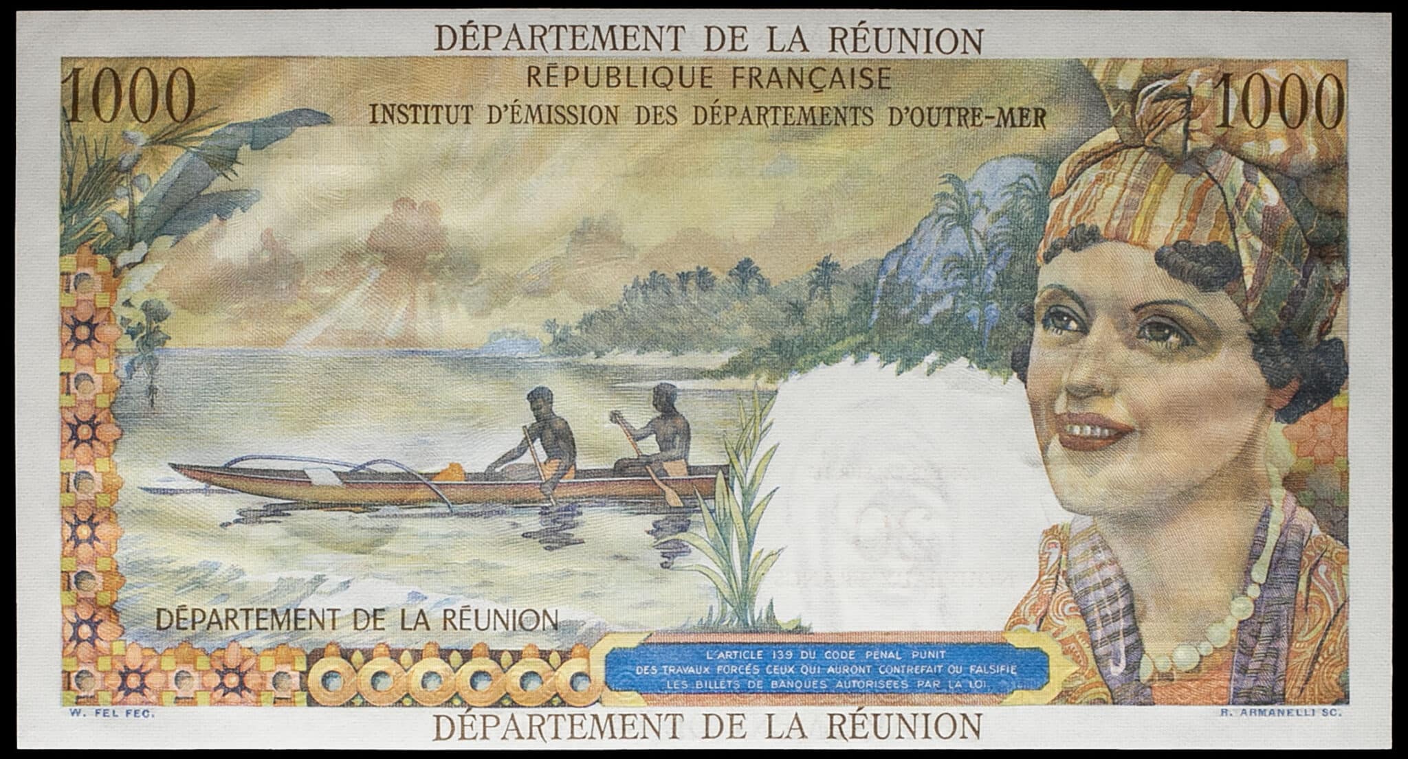 - REUNION 20 nouveaux francs surchargé sur 1000 francs type “Union Française” ND (1973).
