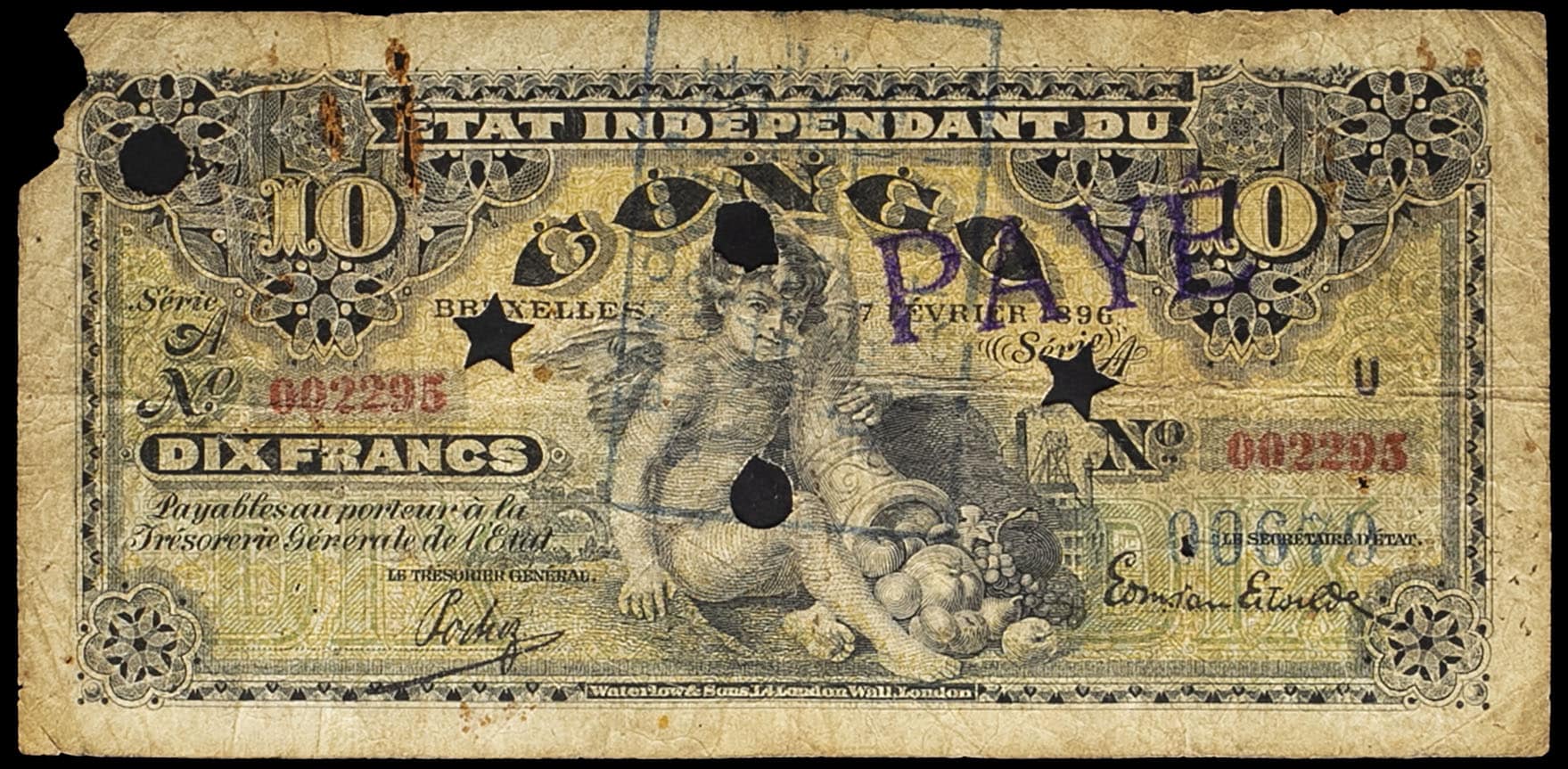 - BELGIAN CONGO 10 francs (ANNULÉ / CANCELLED) 7 février 1896.
