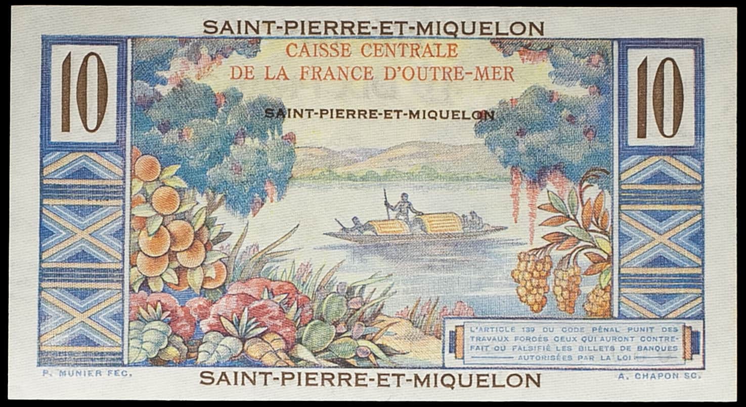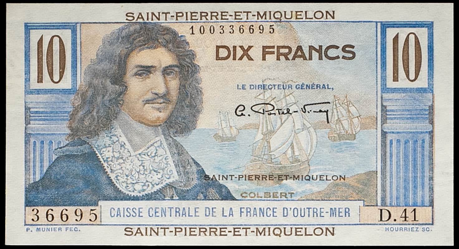 - SAINT PIERRE AND MIQUELON 10 francs type “Colbert” ND (1946).