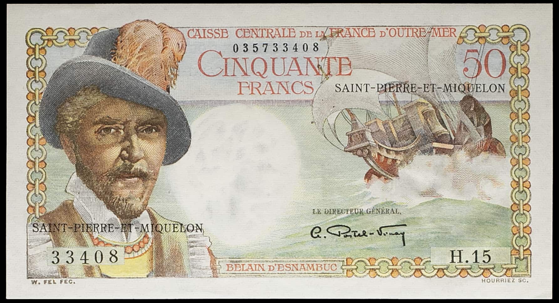 - SAINT PIERRE AND MIQUELON 50 francs type “Belain d’Esnambuc” ND (1946).