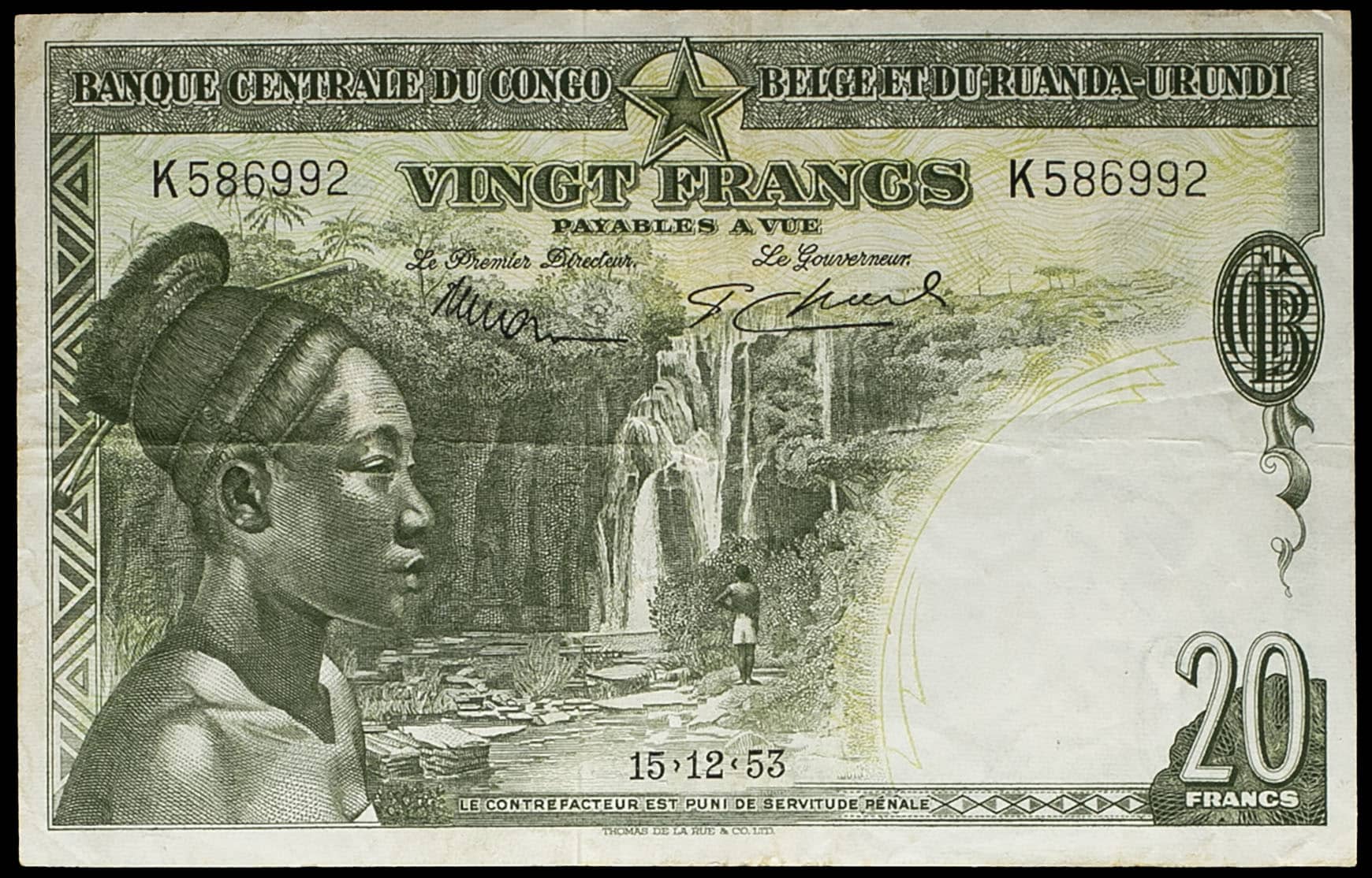 - BELGIAN CONGO 20 francs 15-12-1953.