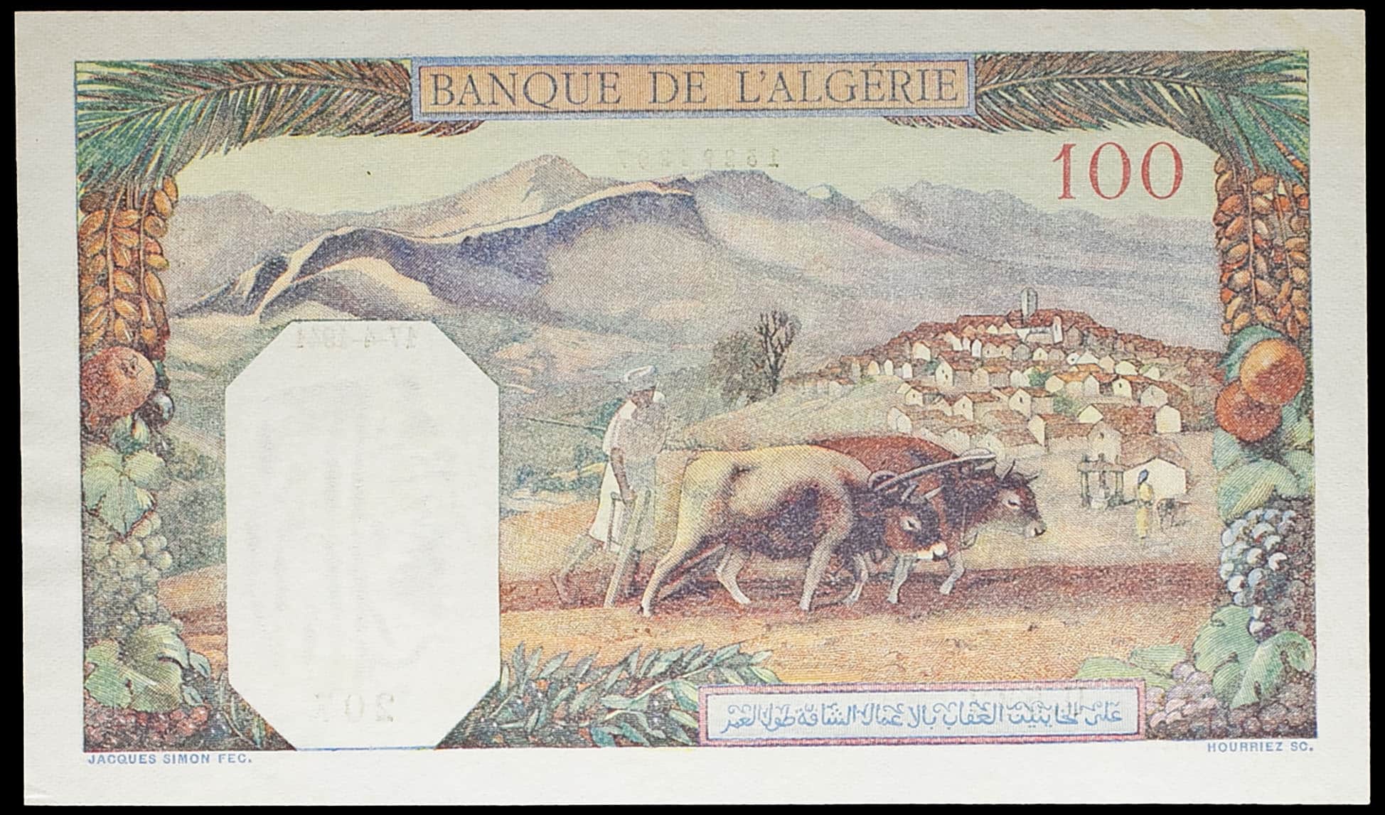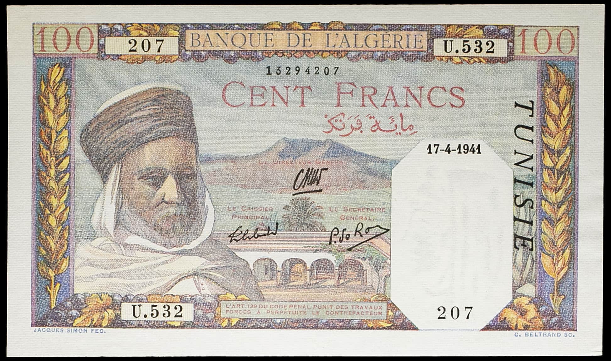 - TUNISIA 100 francs - Banque de l’Algérie 17-4-1941.