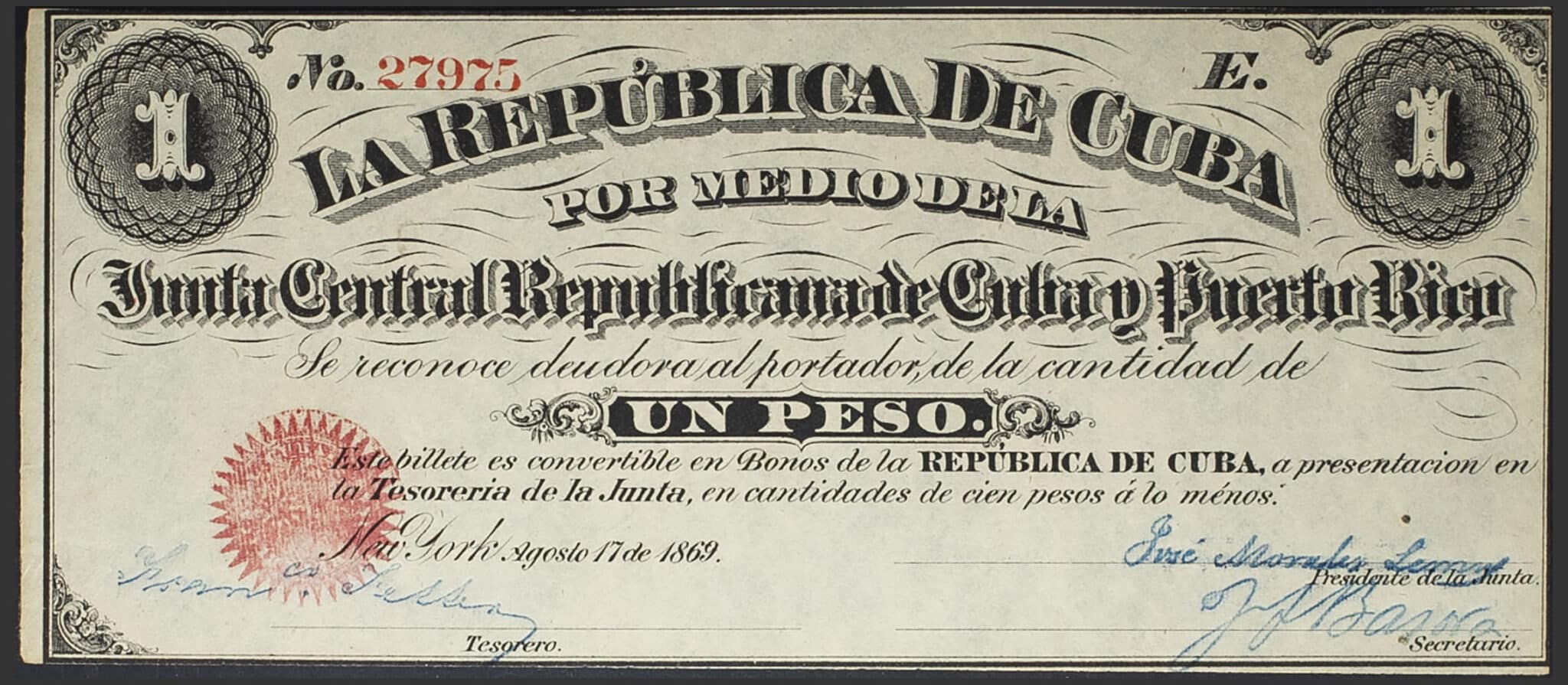 - 1 peso 17 août 1869.