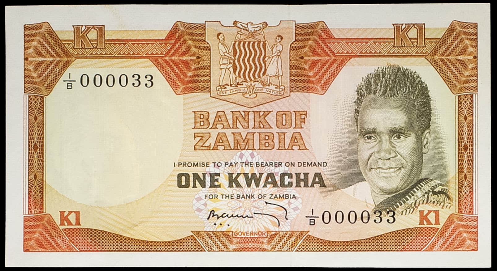 - ZAMBIA 1 kwacha type avec petit numéro ND (1973).
