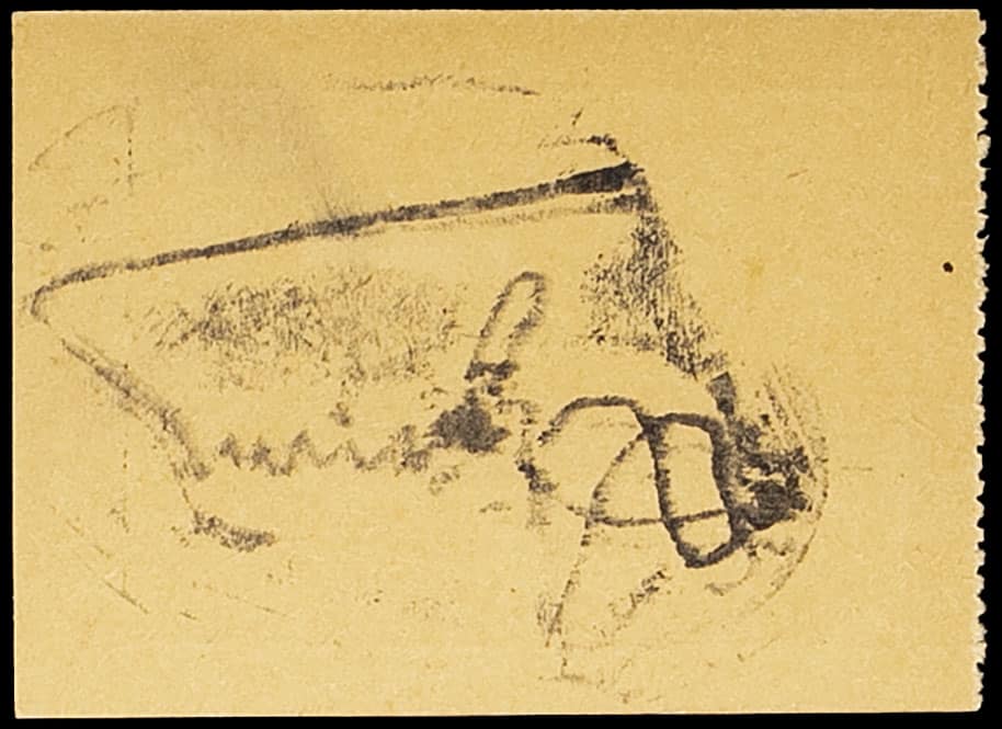 Sans alphabet ni numéro. Impression sur un papier cartonné et signature au verso en noir.
