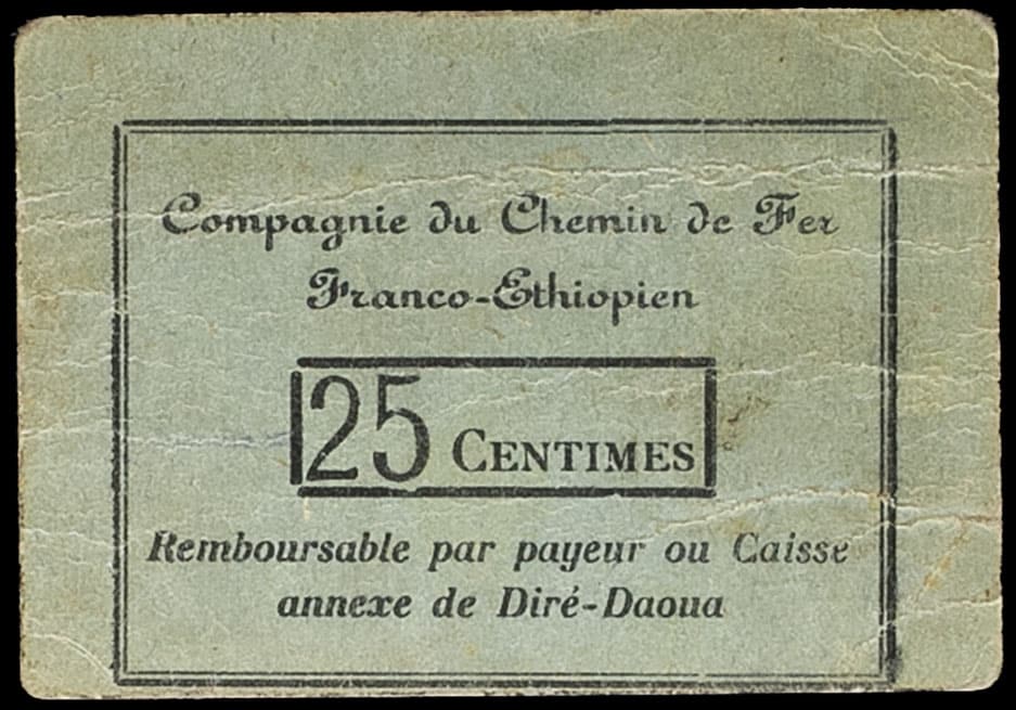 - 25 centimes type “Compagnie du Chemin de Fer Franco-Éthiopien” ND (1919).