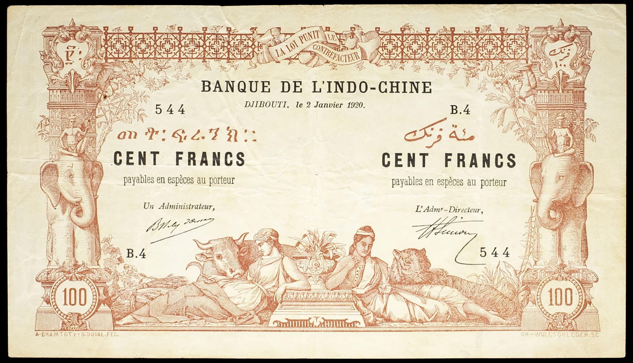 - 100 francs type “marron” - Banque de l’Indo-Chine 2 janvier 1920.
