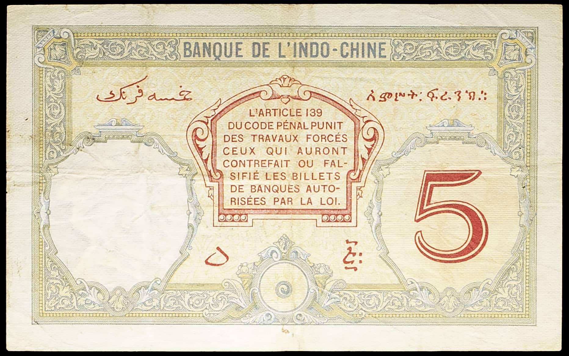 - 5 francs type “Walhain” - Banque de l’Indo-Chine ND (1932).