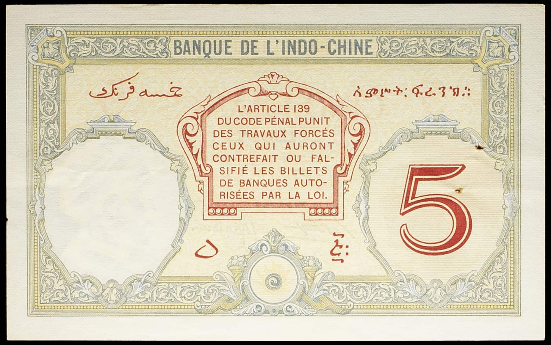 - 5 francs type “Walhain” - Banque de l’Indo-Chine ND (1936).