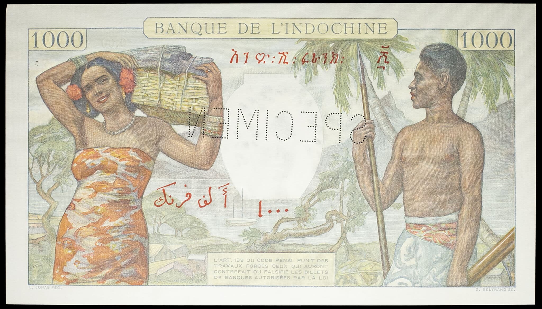- 1000 francs (SPÉCIMEN) - Banque de l’Indochine ND (1938).