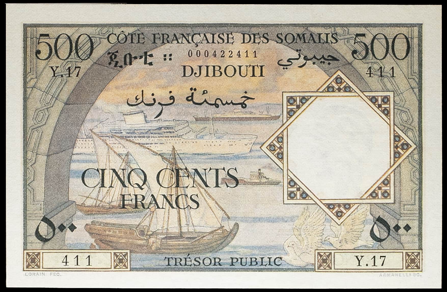 - 500 francs type “rade de Djibouti” - Côte Française des Somalis (Trésor Public) ND (1952).