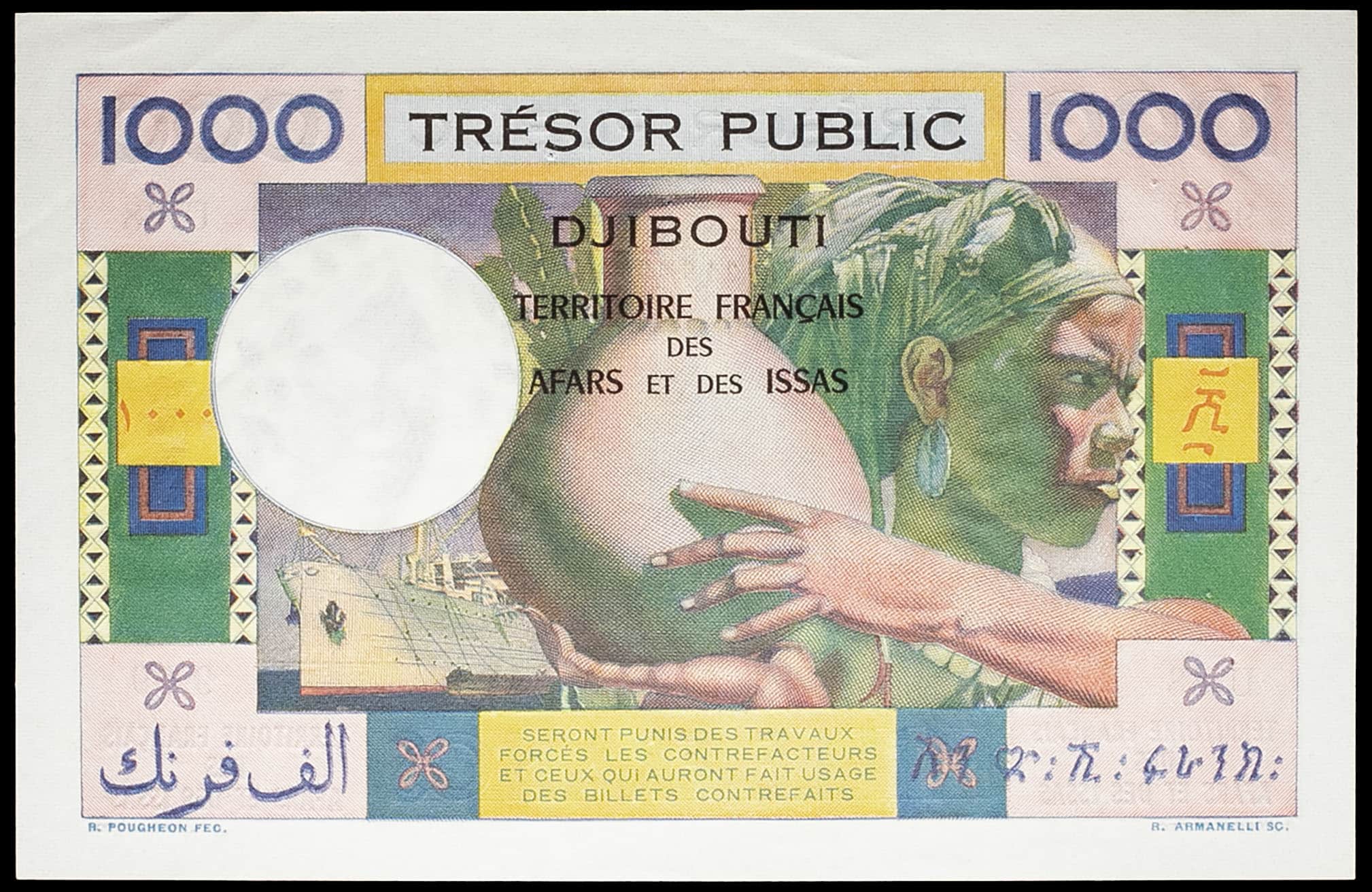 - 1000 francs type “femme à la jarre” - Territoire Français des Afars et des Issas (Trésor Public) ND (1973).