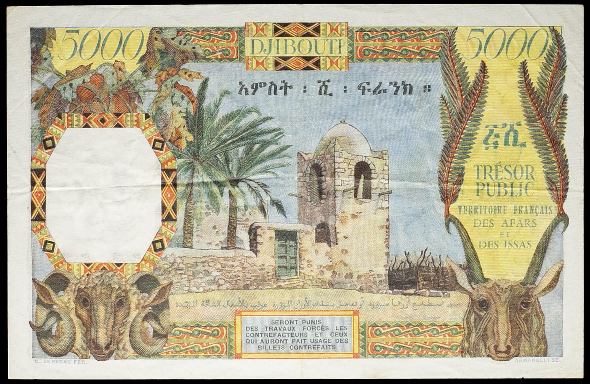 - 5000 francs type “port de Djibouti” - Territoire Français des Afars et des Issas (Trésor Public) ND (1969).