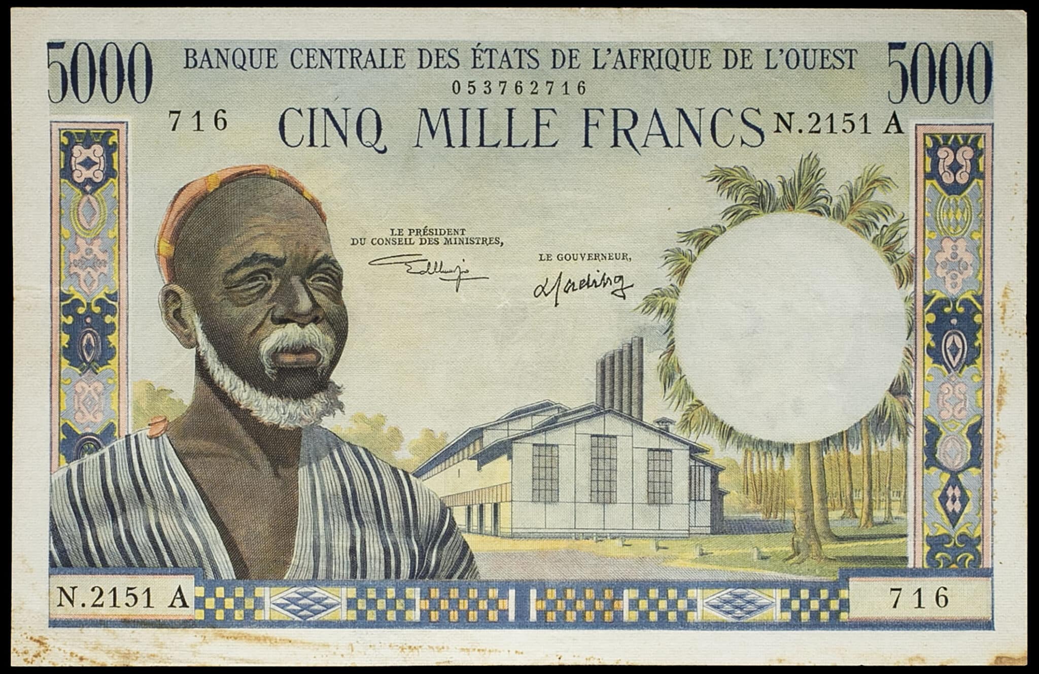- WEST AFRICAN STATES 5000 francs - A (Côte d’Ivoire) ND (1973).