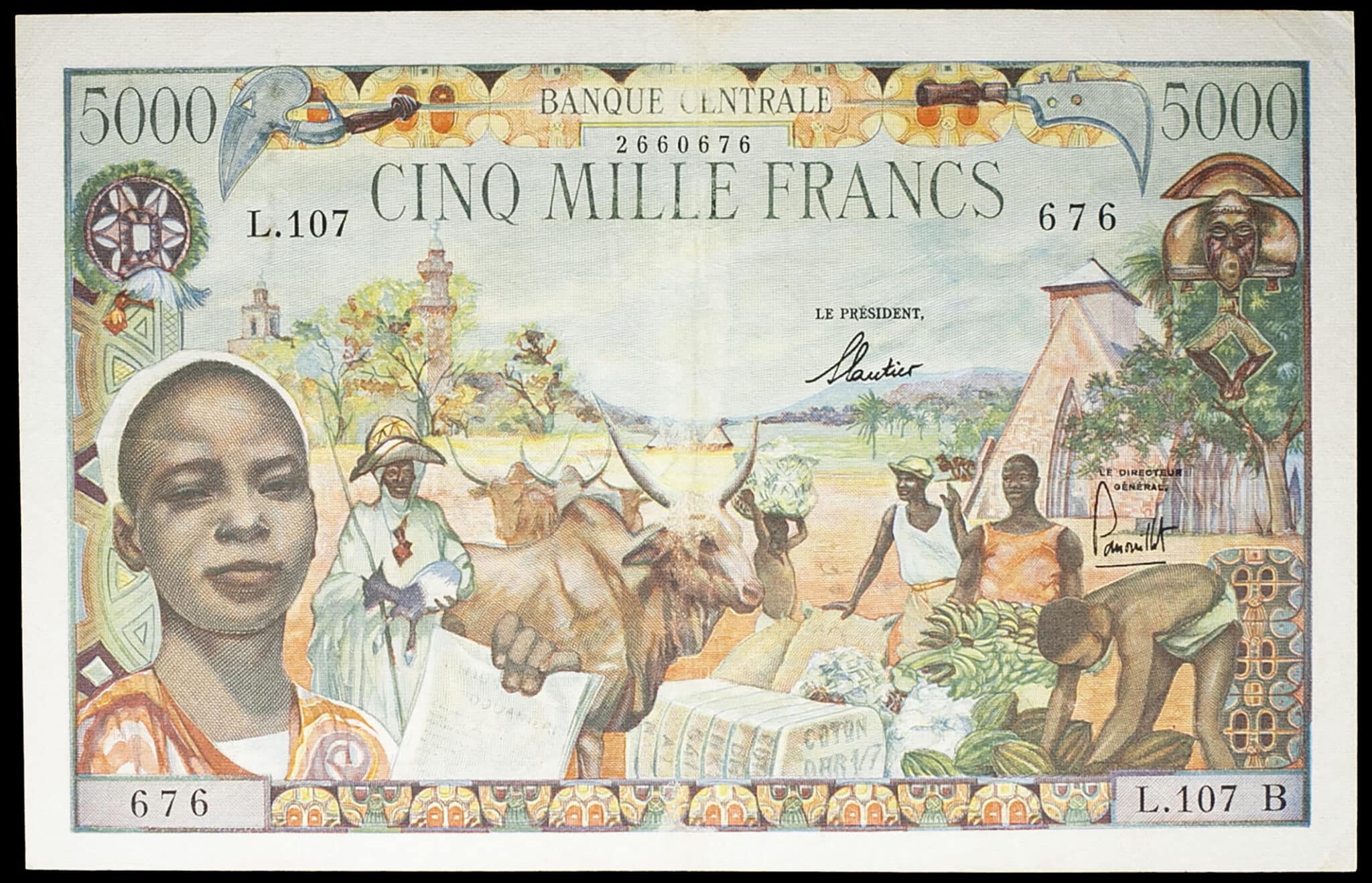 - EQUATORIAL AFRICAN STATES 5000 francs - B (Centrafrique) ND (1963).