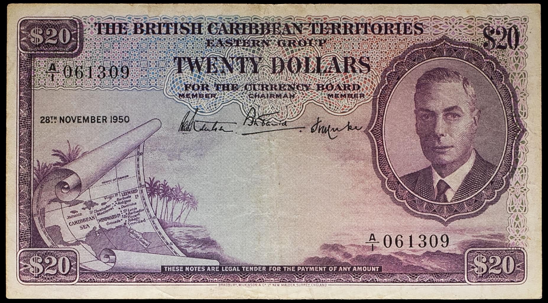 - EAST CARIBBEAN STATES 20 dollars avec le portrait du roi Georges VI 20 novembre 1950.