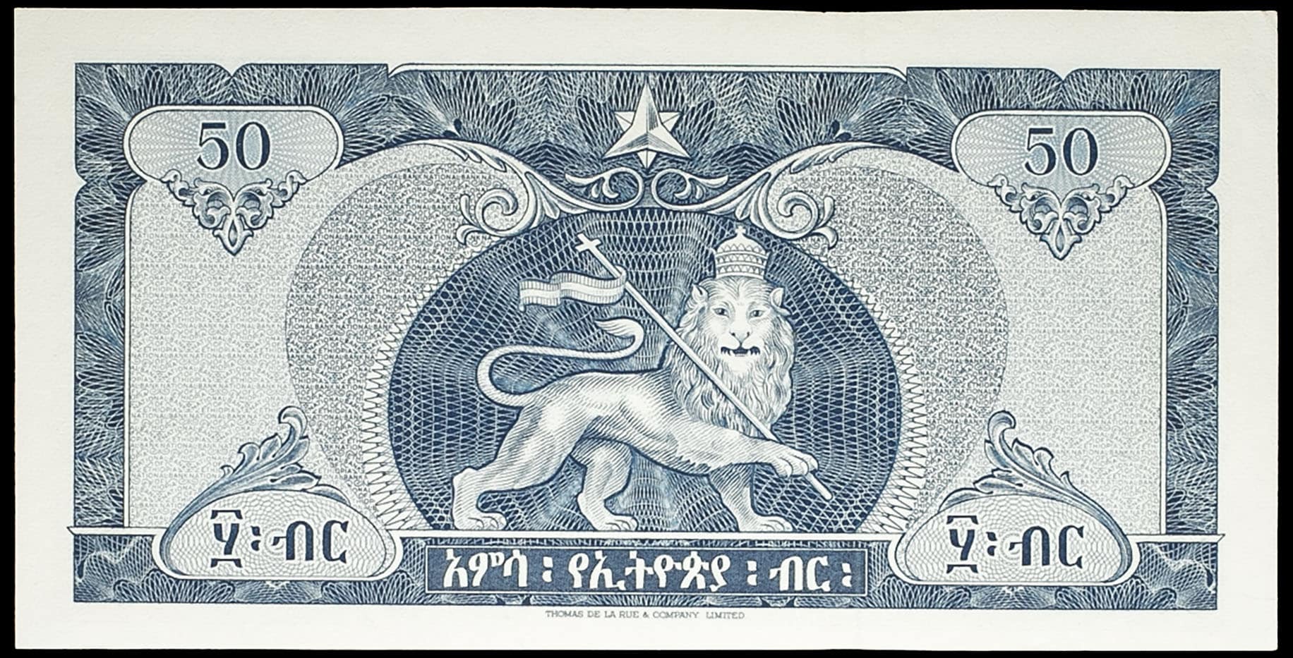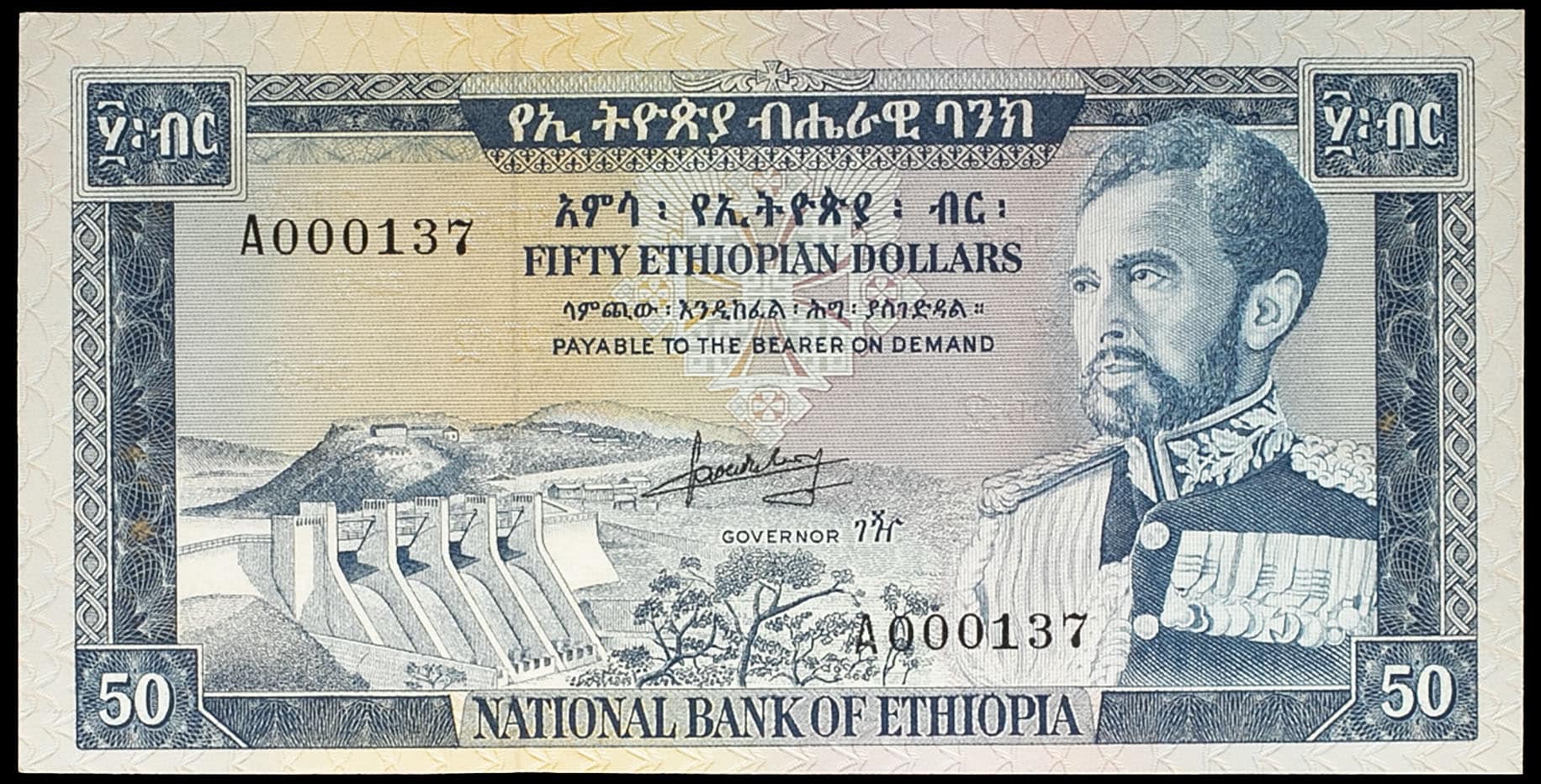 - ETHIOPIA 50 dollars avec le portrait de l’empereur Haïlé Sélassié et petit numéro ND (1966).