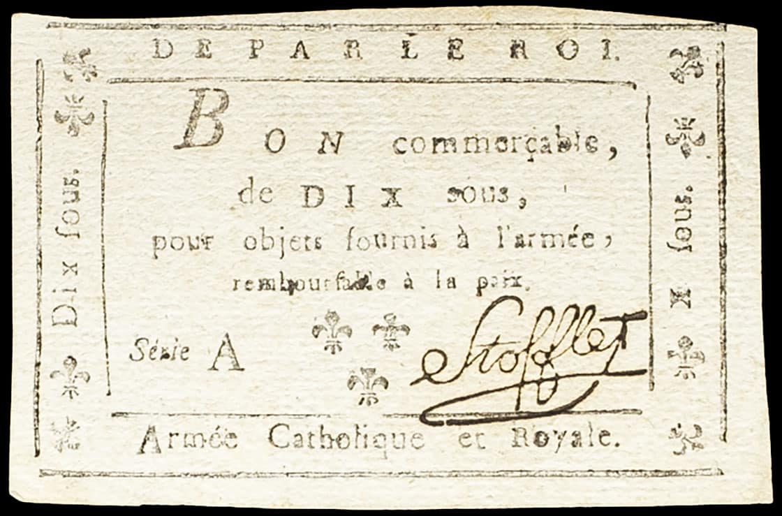 - Bon de 10 sous type “Armée Catholique et Royale” ND (1794).