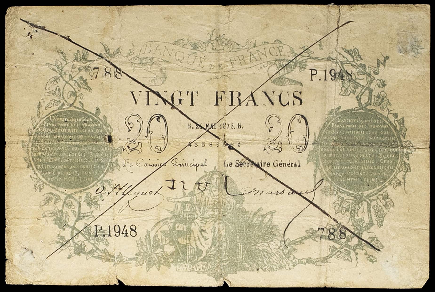 - 20 francs type “bleu”, faux d’époque 24 mai 1873.