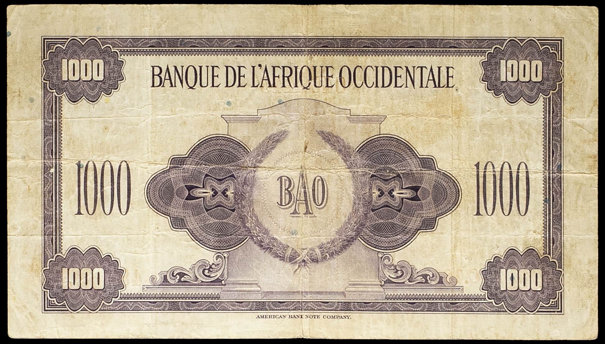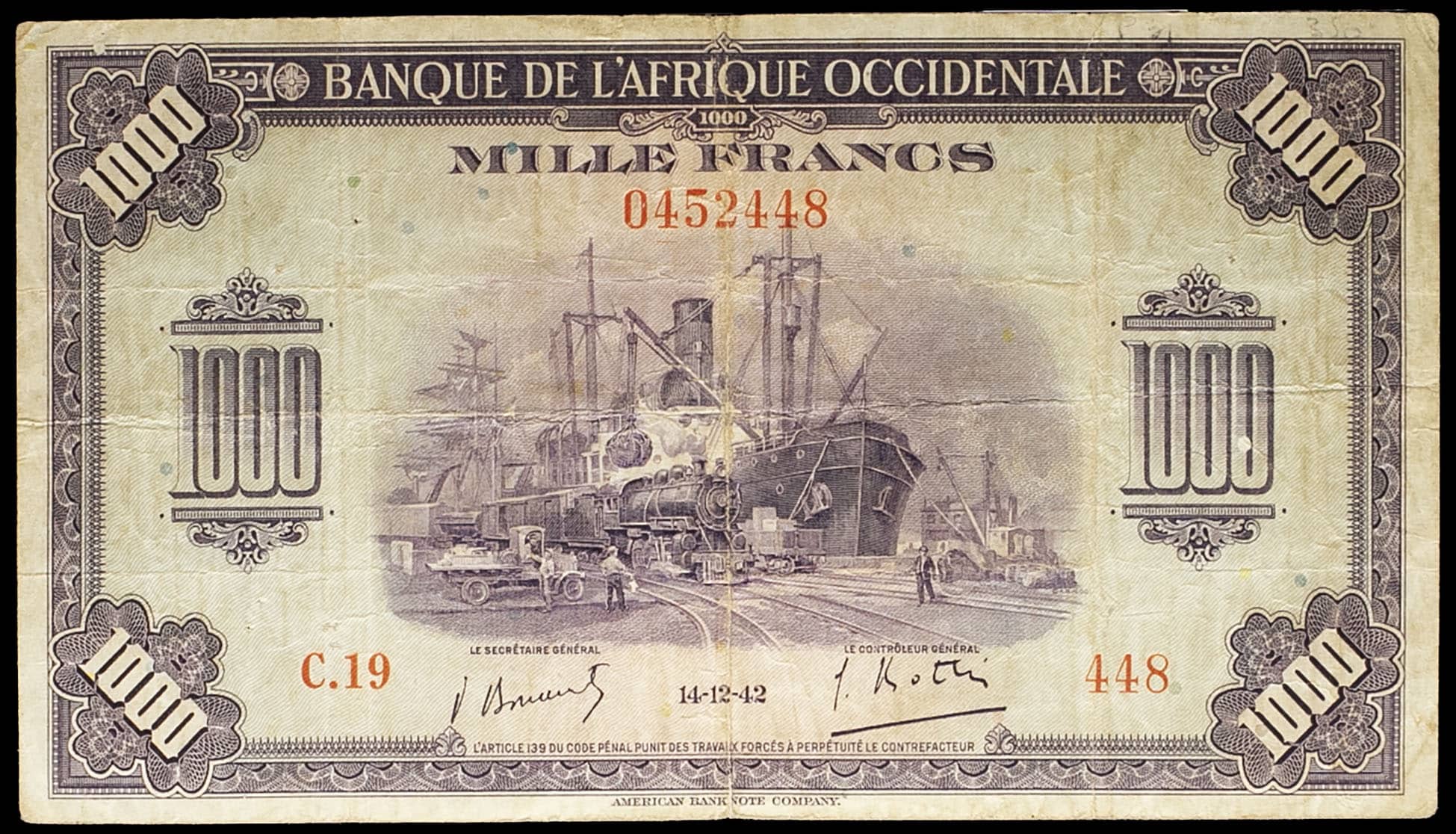 - FRENCH WEST AFRICA 1000 francs type “violet” 14-12-1942.