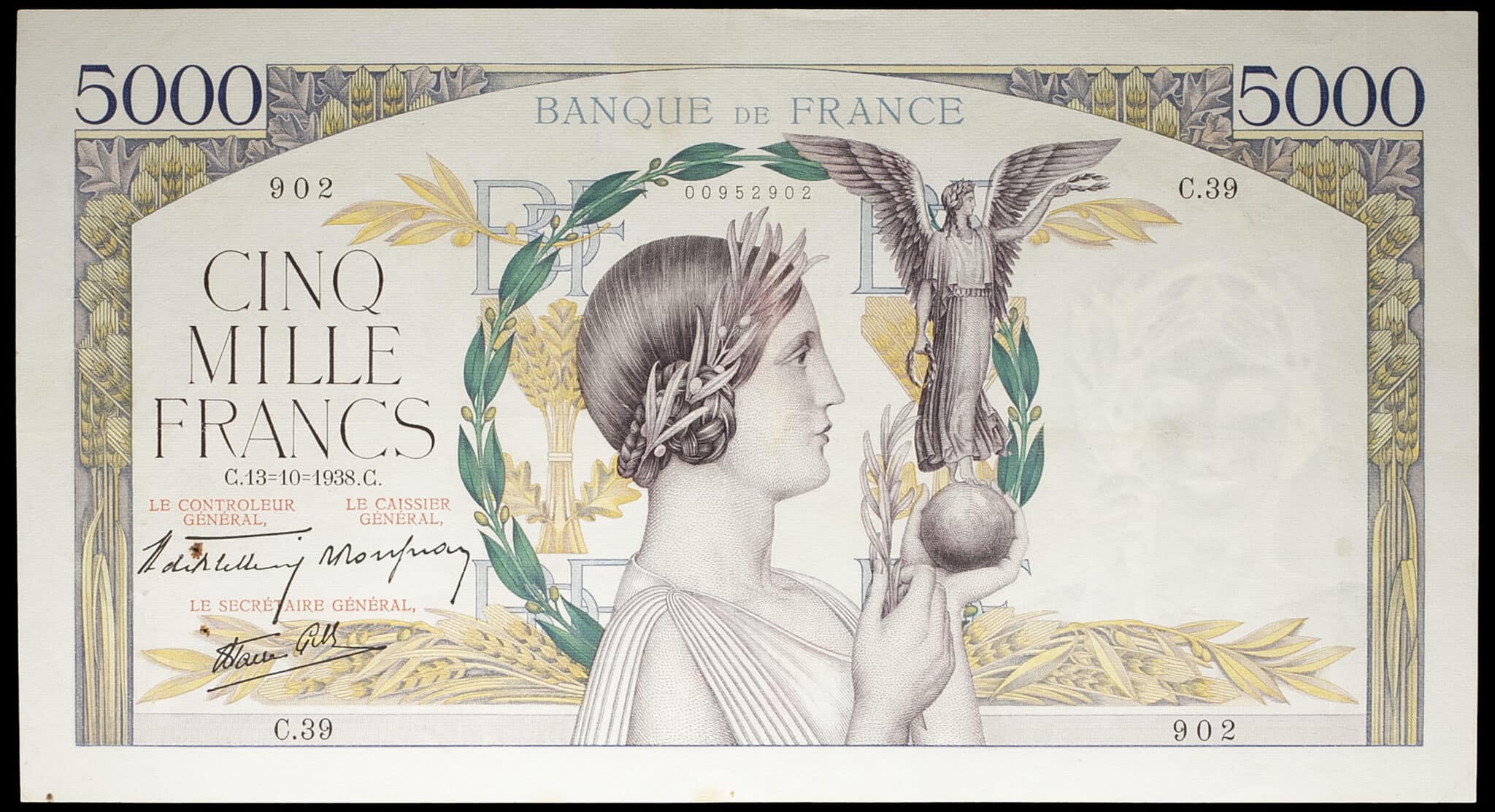- 5000 francs type “Victoire” taille douce 13-10-1938.