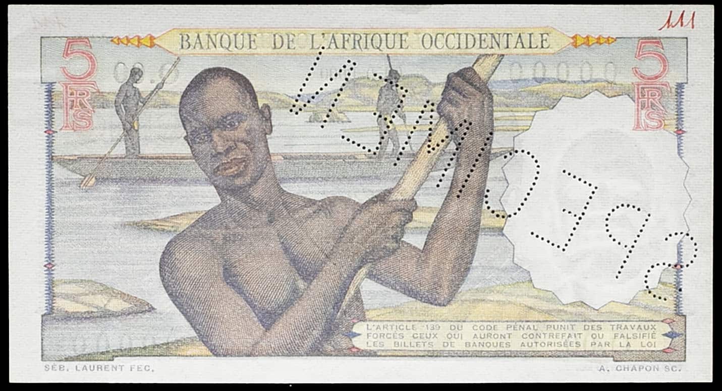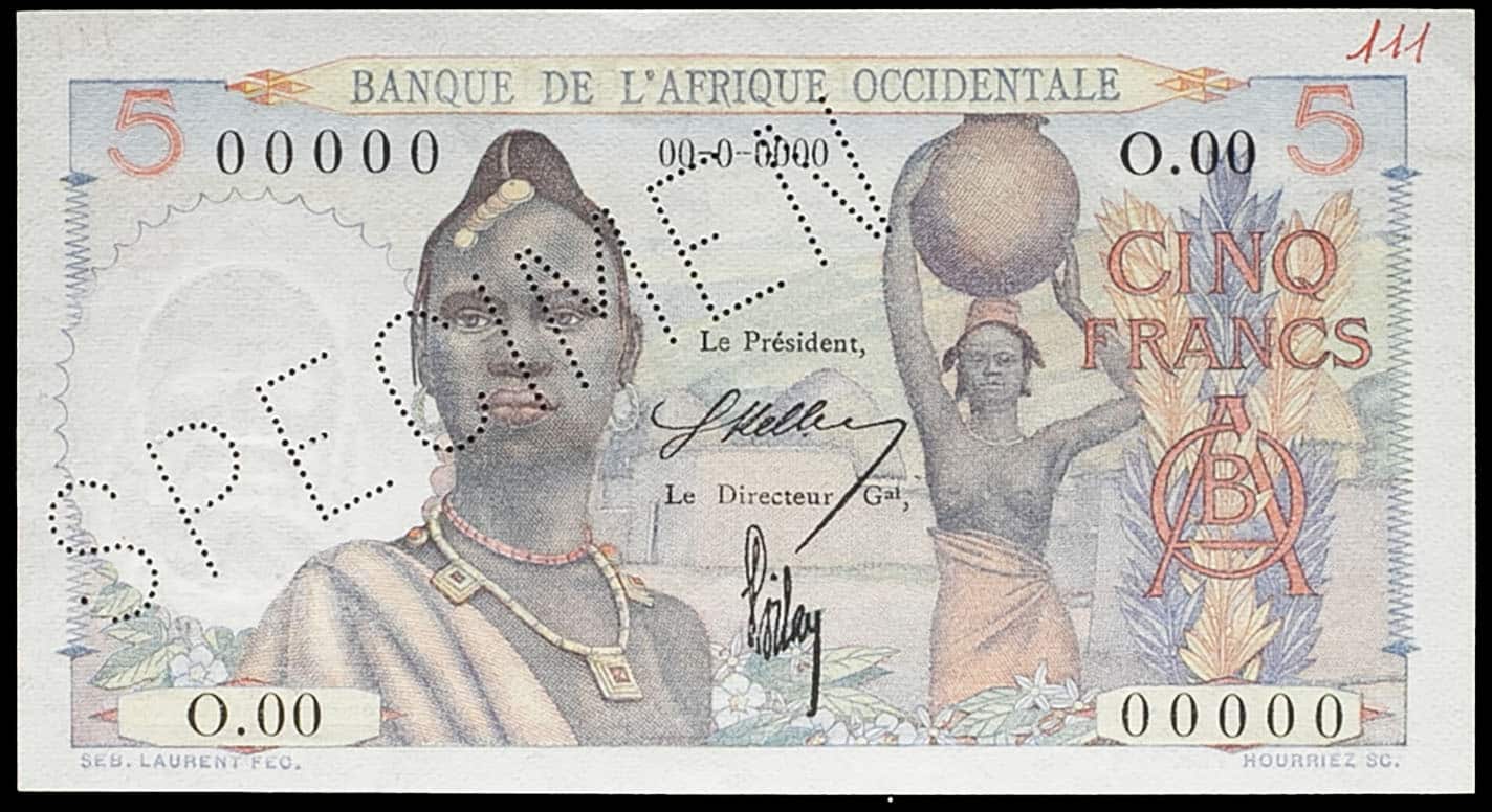 - FRENCH WEST AFRICA 5 francs (SPÉCIMEN) ND (1943).