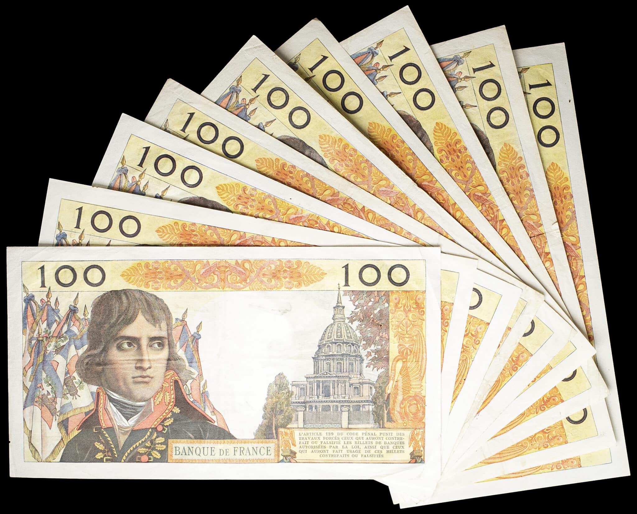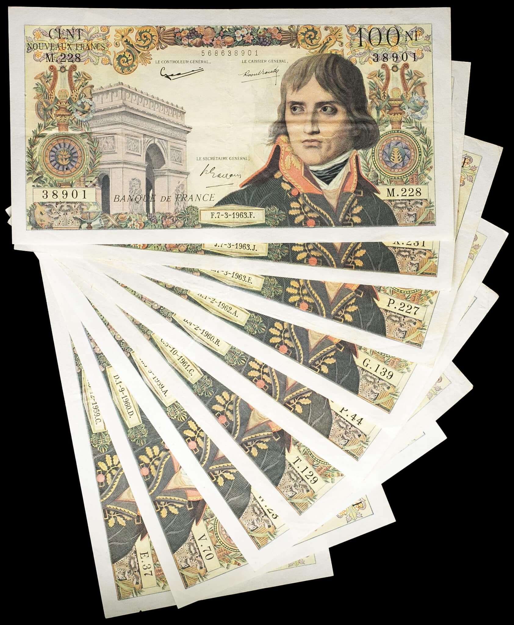 - Lot (9) - 100 nouveaux francs type “Napoléon Bonaparte” 3-9-1959 au 7-3-1963.