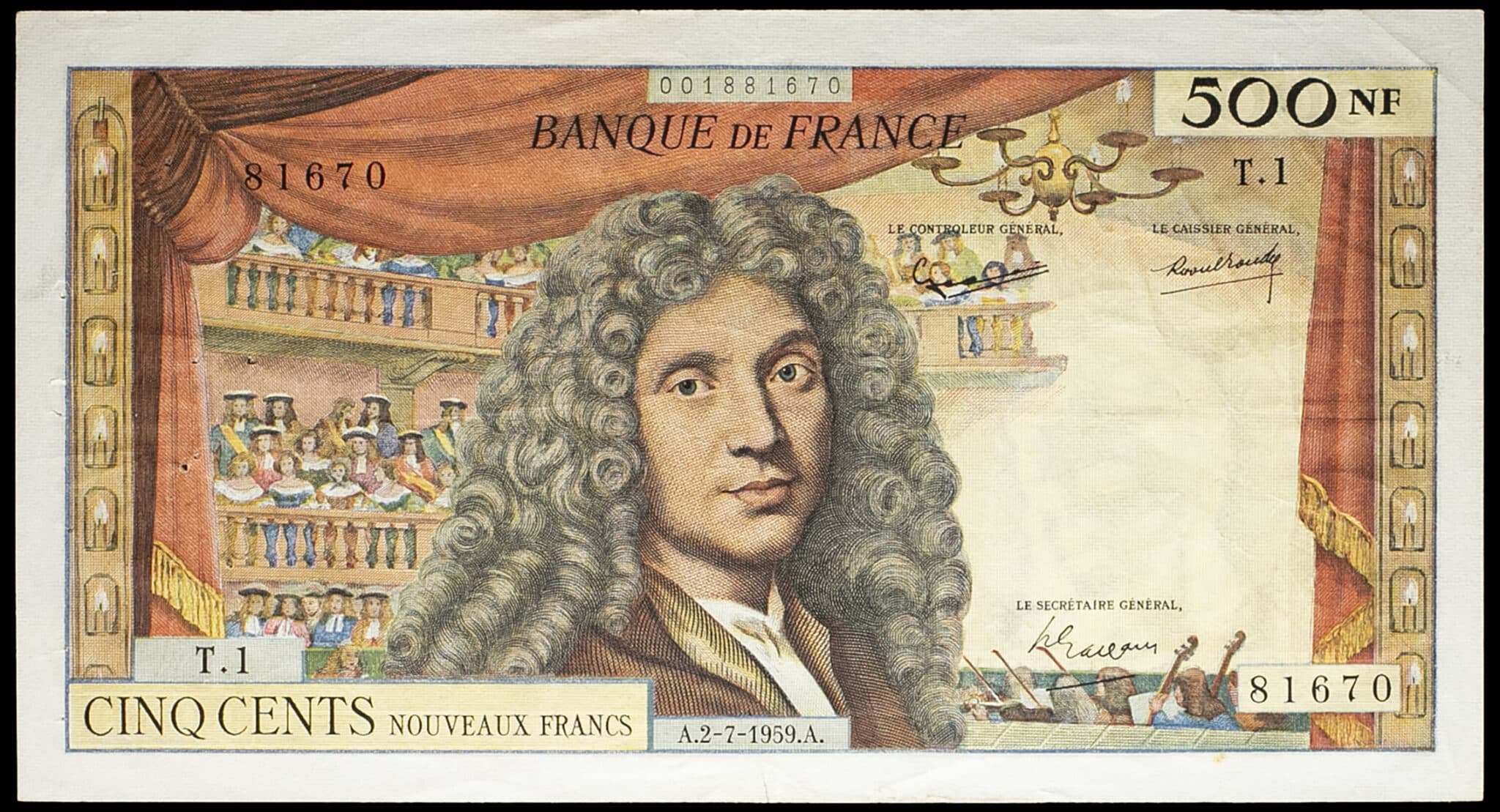 - 500 nouveaux francs type “Molière” 2-7-1959.