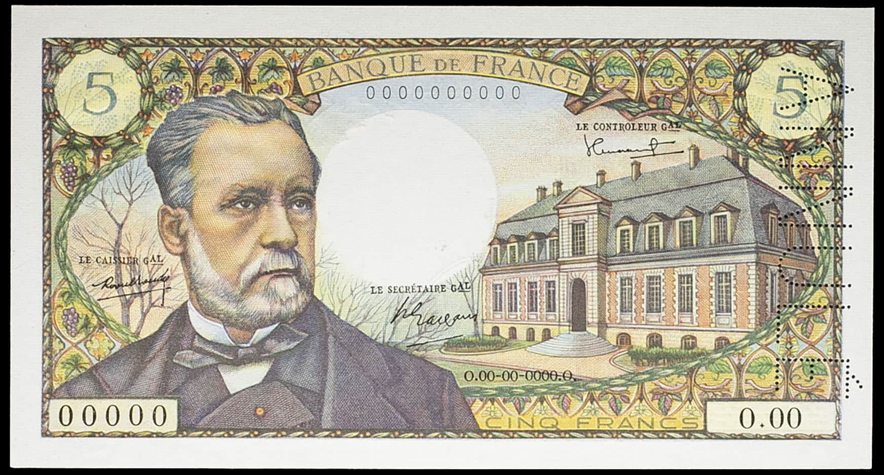 - Épreuve de 5 francs type “Louis Pasteur” (PROOF) ND (1966).
