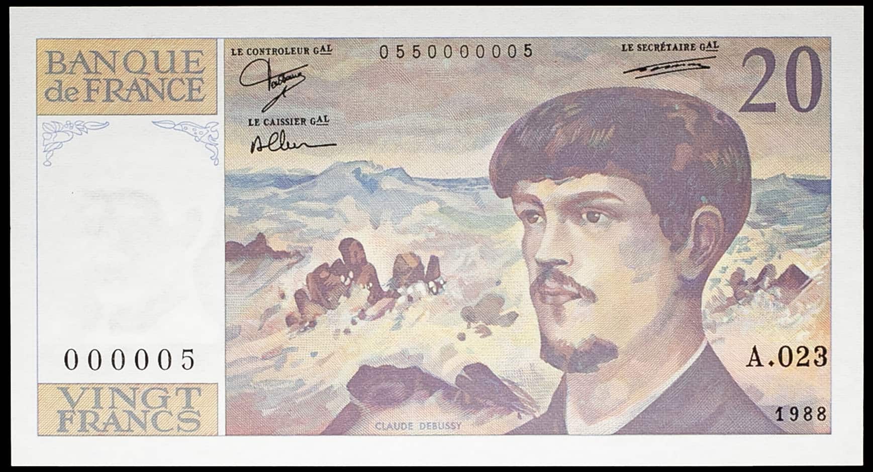 - 20 francs type “Claude Debussy” avec petit numéro 1988.