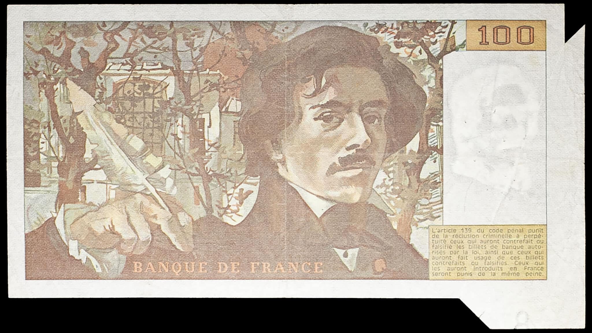 - 100 francs type “Eugène Delacroix” modifié FAUTÉ / ERROR avec appendice de papier 1979.