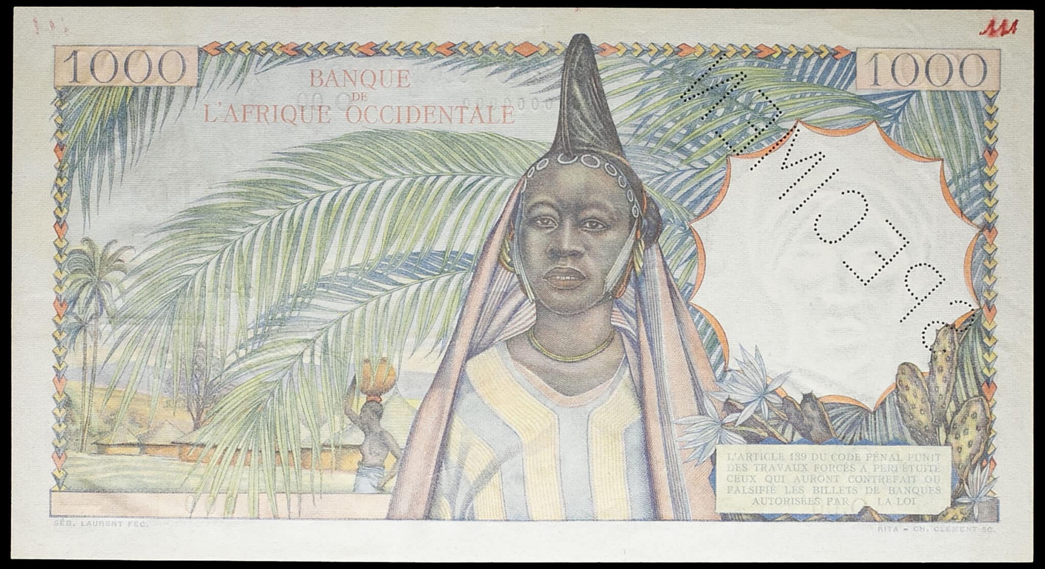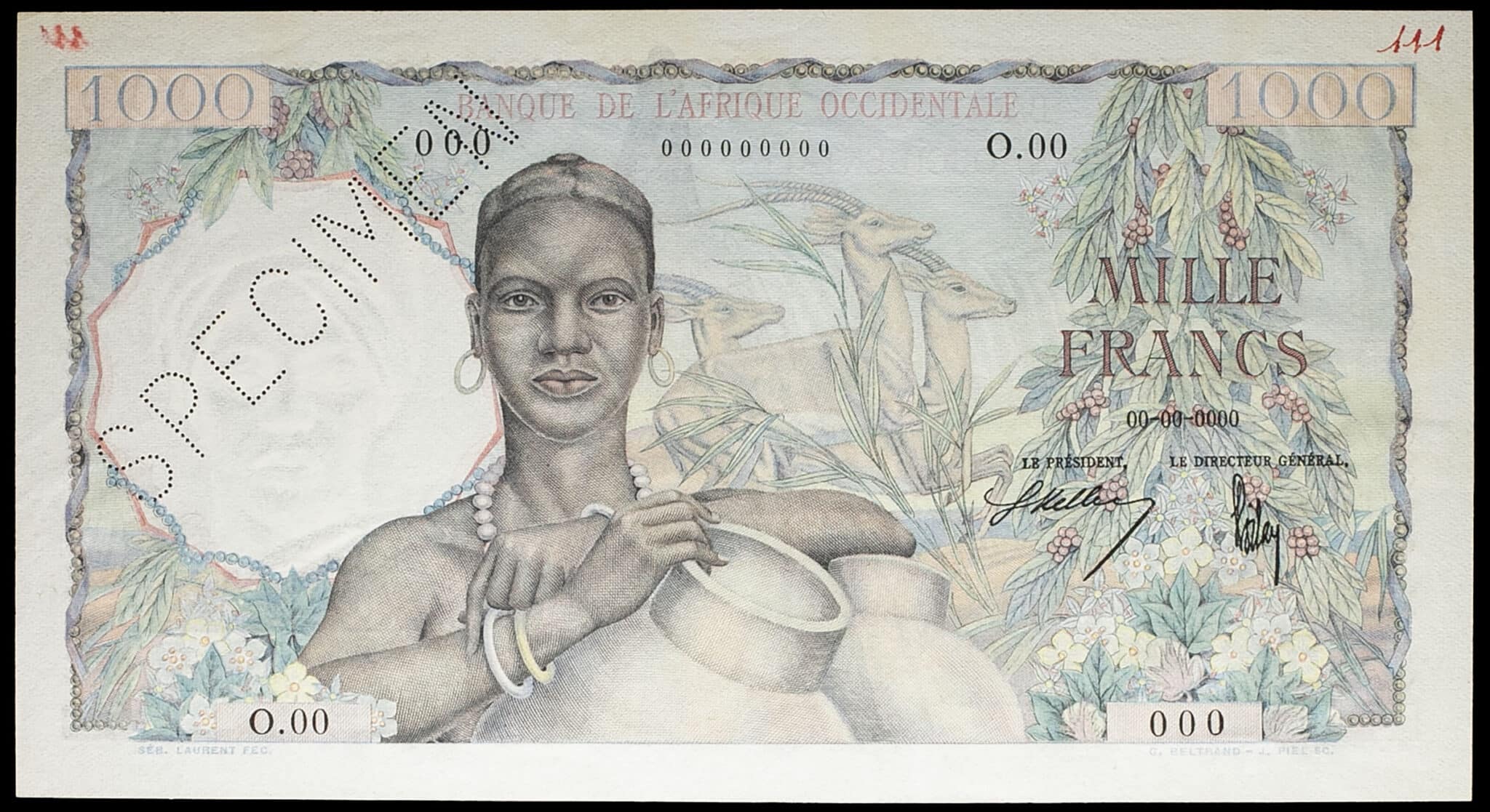 - FRENCH WEST AFRICA 1000 francs (SPÉCIMEN) ND (1945).