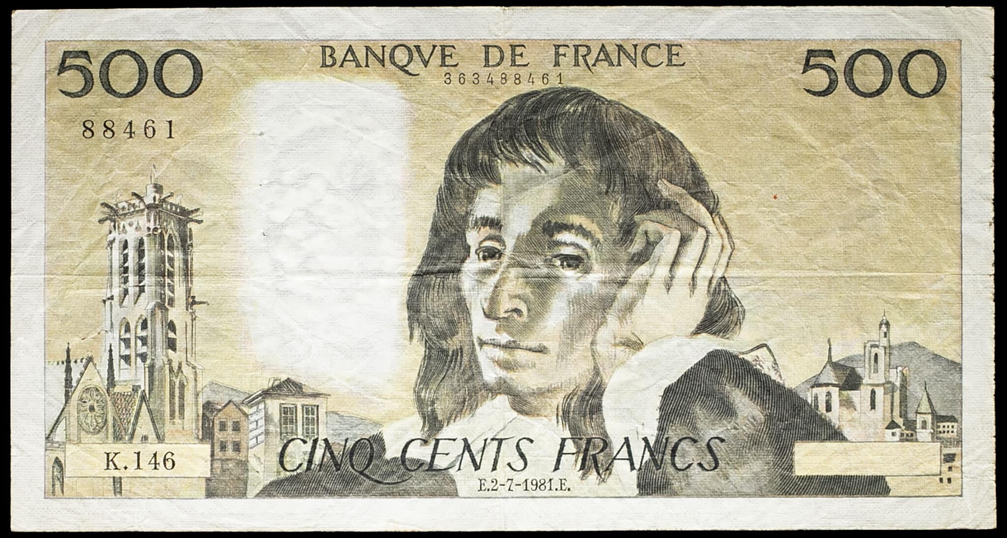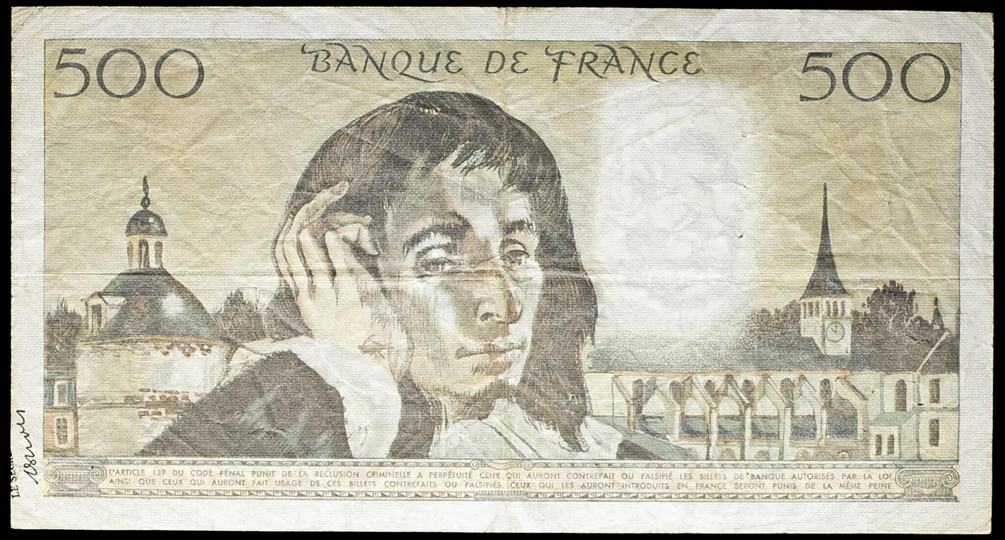 - 500 francs type “Blaise Pascal” FAUTÉ / ERROR avec absence de numéro et de signature 2-7-1981.