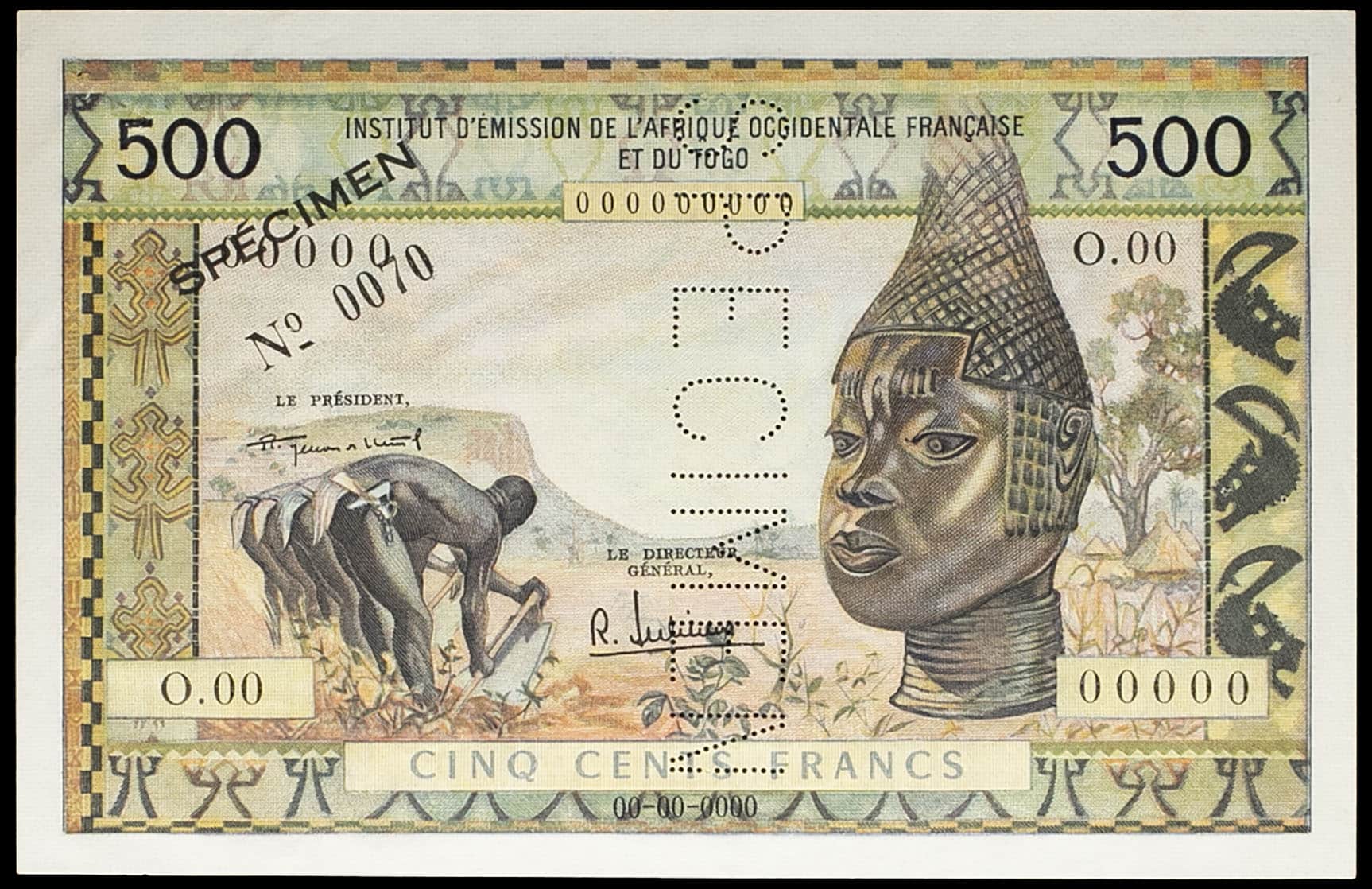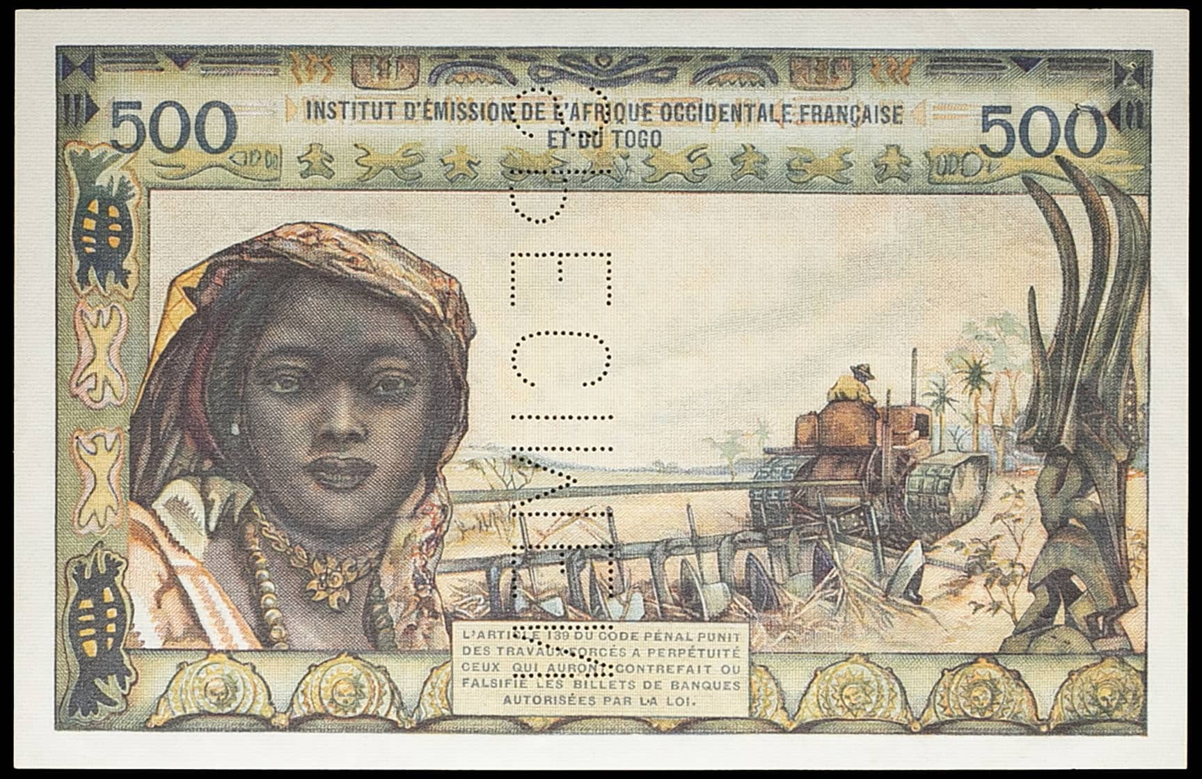 - FRENCH WEST AFRICA 500 francs (SPÉCIMEN) - Institut d’Émission de l’Afrique Occidentale Française et du Togo ND (1957).