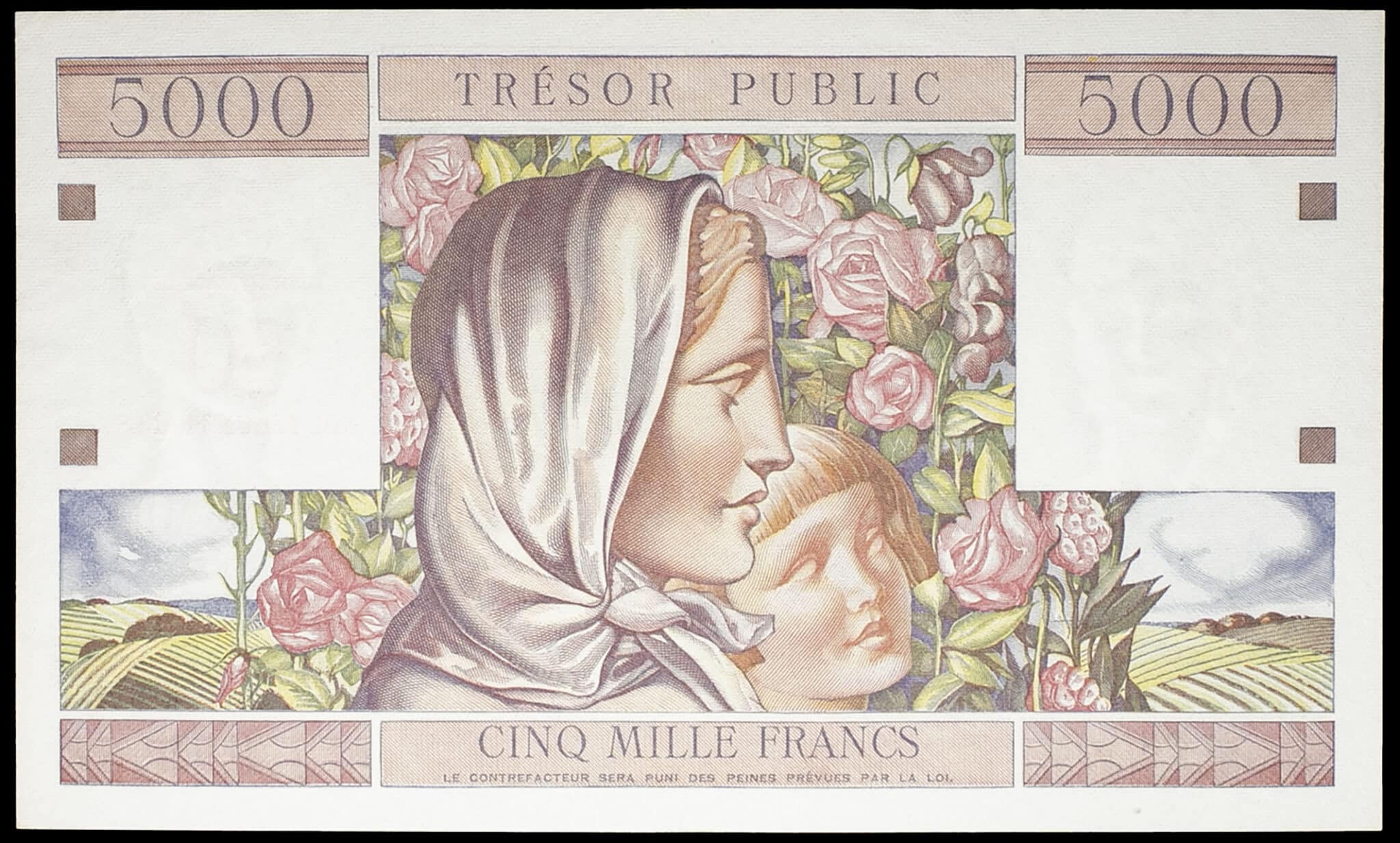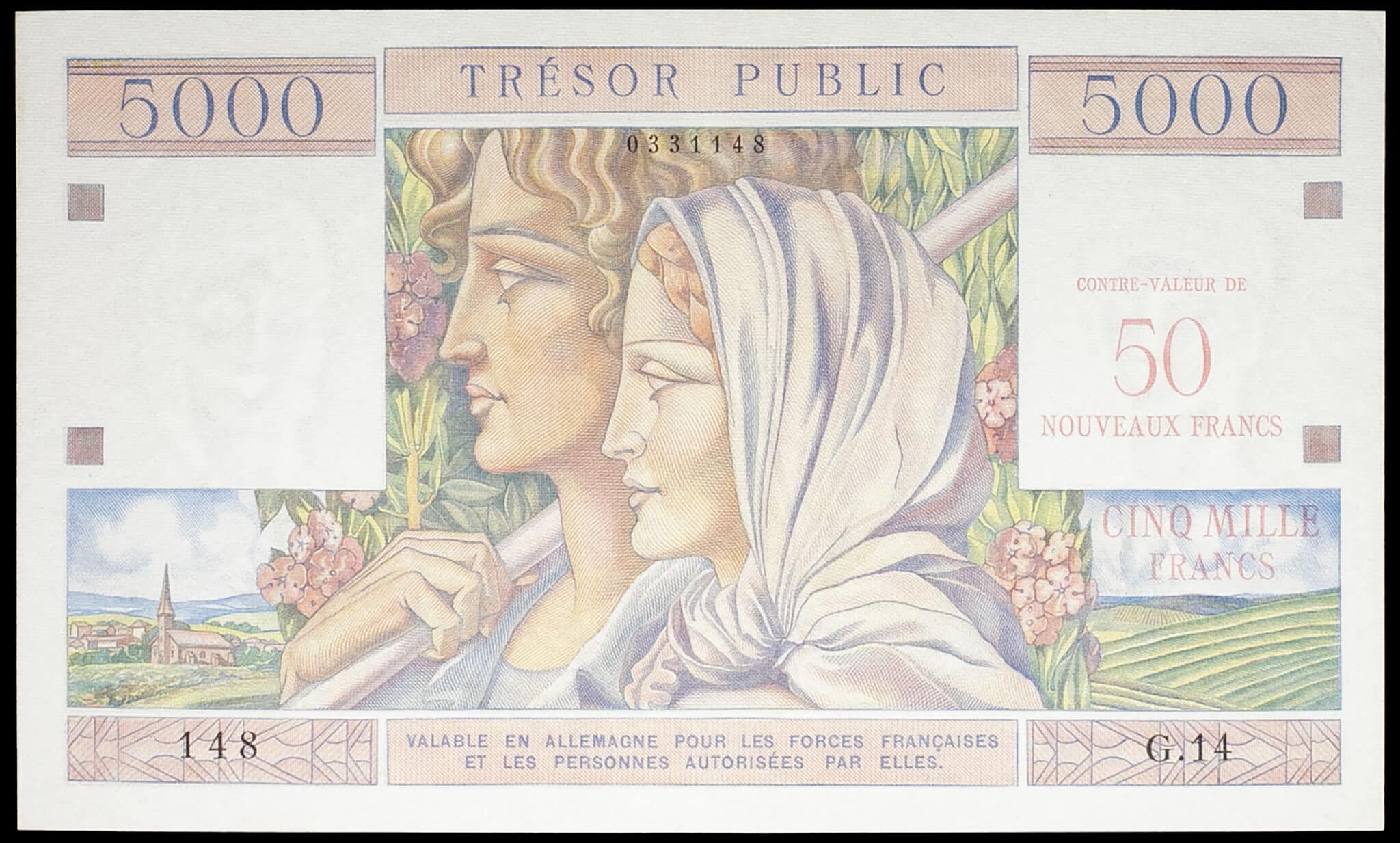 - 50 nouveaux francs surchargé sur 5000 francs type “Trésor Public” ND (1960).