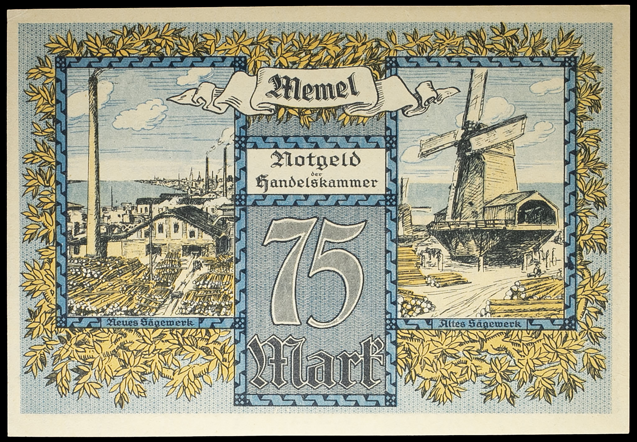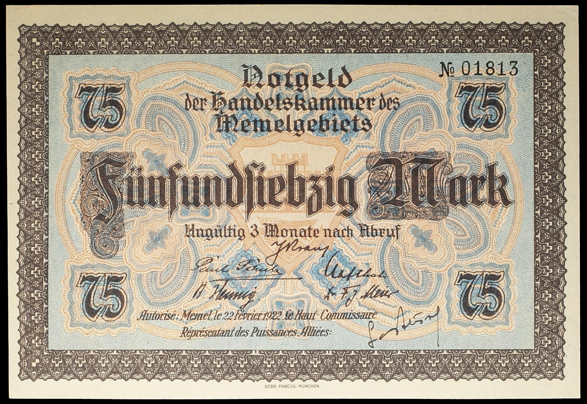 - FRANCE / MEMEL ADMINISTRATION Notgeld de 75 mark type “Handelskammer des Memelgebiets” 22 février 1922.