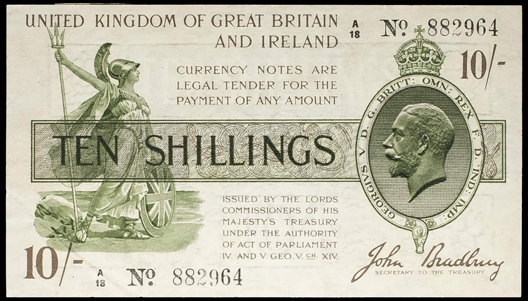 - UNITED KINGDOM 10 shillings avec le portrait de Georges V ND (1918).